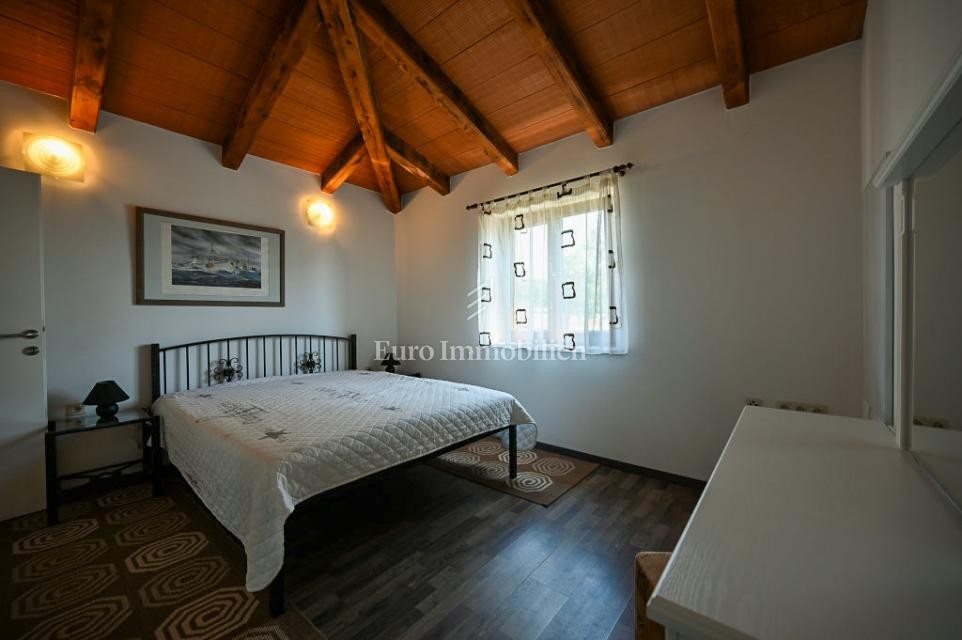 Posebnu vrijednost čine sauna, bazen i uređena okućnica s roštiljem, idealna za opuštanje i druženja. Kuća je klimatizirana, grijanje je osigurano električnom energijom i kaminom, a satelitska TV pruža dodatnu zabavu.
