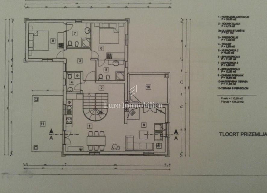 Kuća je sagrađena 2013. godine a koristila se za iznajmljivanje. Ukupna površina kuće je 219 m2 od čega je 186m2 stambeno a 33m2 otpada na ostavu. Građena je na kaskadnom zemljištu površine 660m2.
