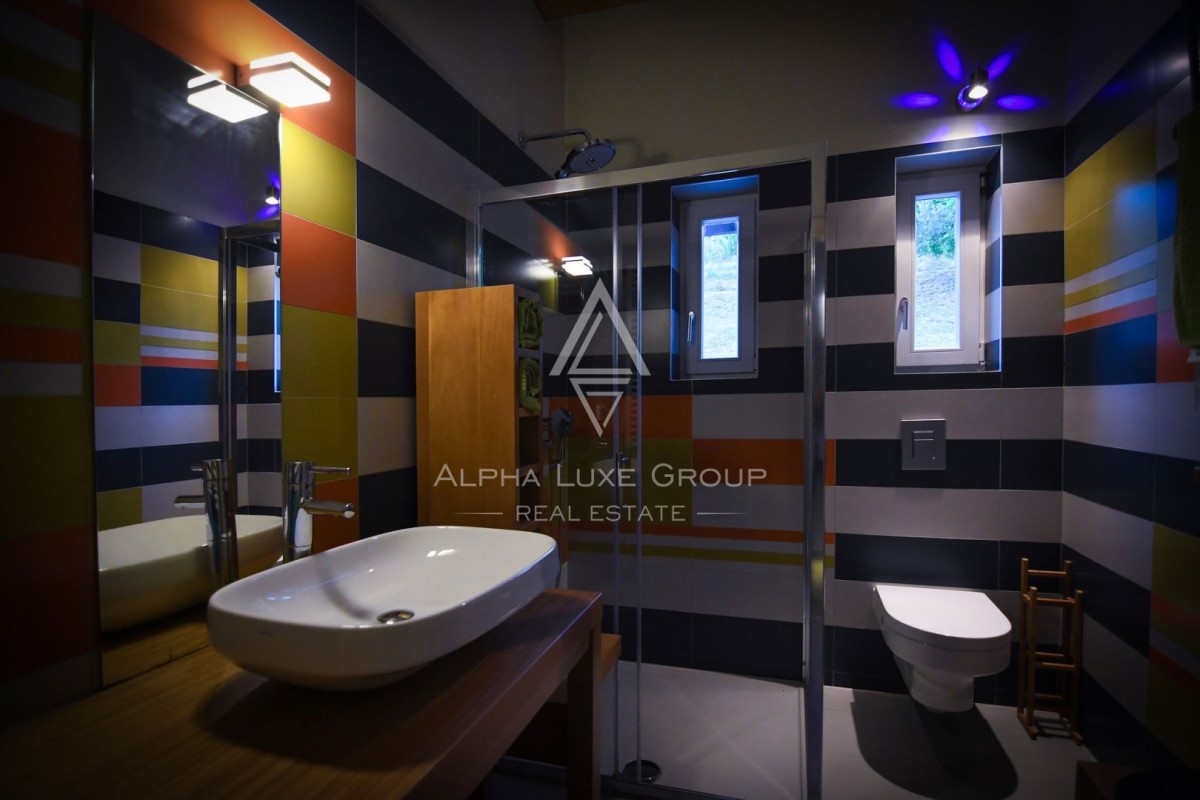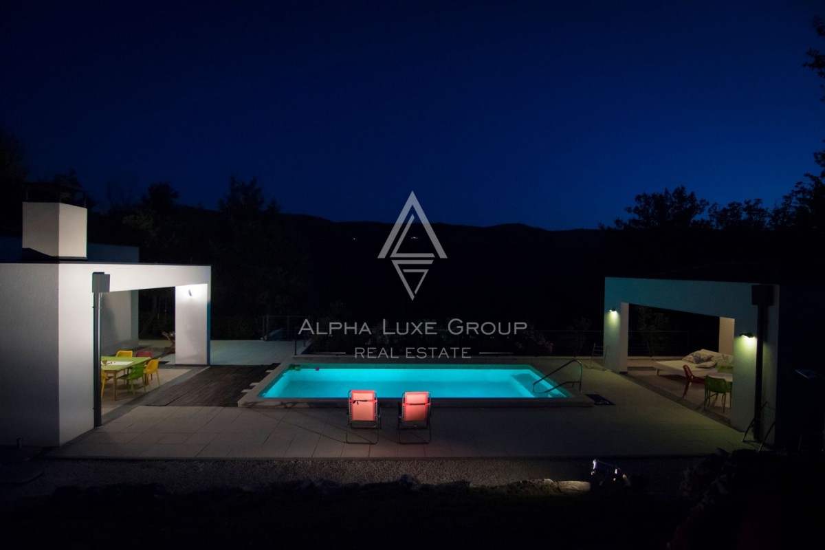 Vila s bazenom od 110m2 stambene površine i 5.111m2 okućnice u središnjoj Istri, oko 3km od starog grada Motovuna. Kuća je okružena s 2500 m2 pomno uređenih vrtova za aktivan i ležeran obiteljski odmor. Nalazi se na južnoj strani, s lijepim pogledom i dosta sunca. Za opuštanje i uživanje na suncu uređene terase okružuju dom. Stotinjak metara dalje su prvi susjedi. Kolektori sunca zagrijavaju vodu u bazenu. Kućni ljubimci su dobrodošli ovdje.