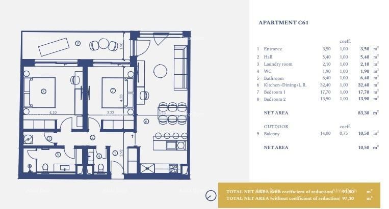 L'appartamento C-61 (97,3 m2) si trova al 3° piano:
