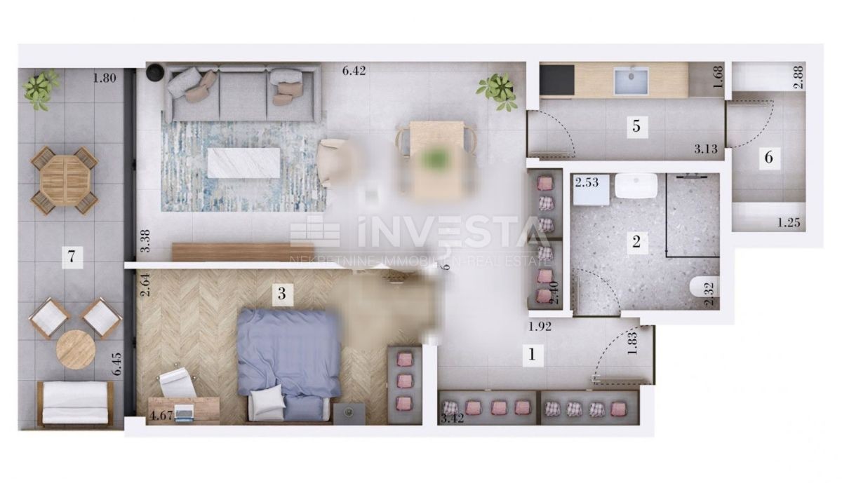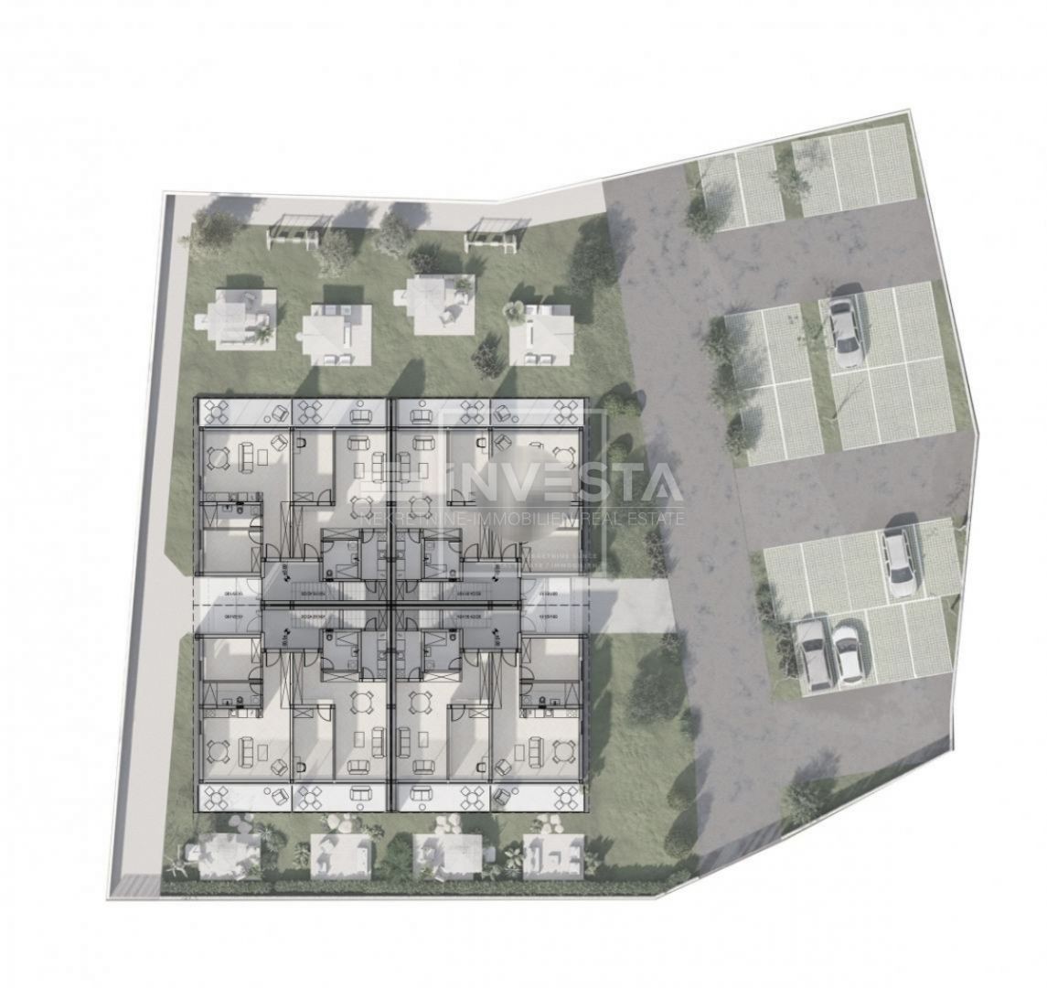 Appartamento di nuova costruzione di alta qualità e design moderno, con una superficie totale di 66,5 m², un giardino aggiuntivo di circa 35 m² e una spaziosa terrazza. L'appartamento è composto da un soggiorno con accesso alla terrazza e al giardino, cucina, zona pranzo e bagno. L'orientamento dell'appartamento garantisce molta luce naturale durante il giorno.
