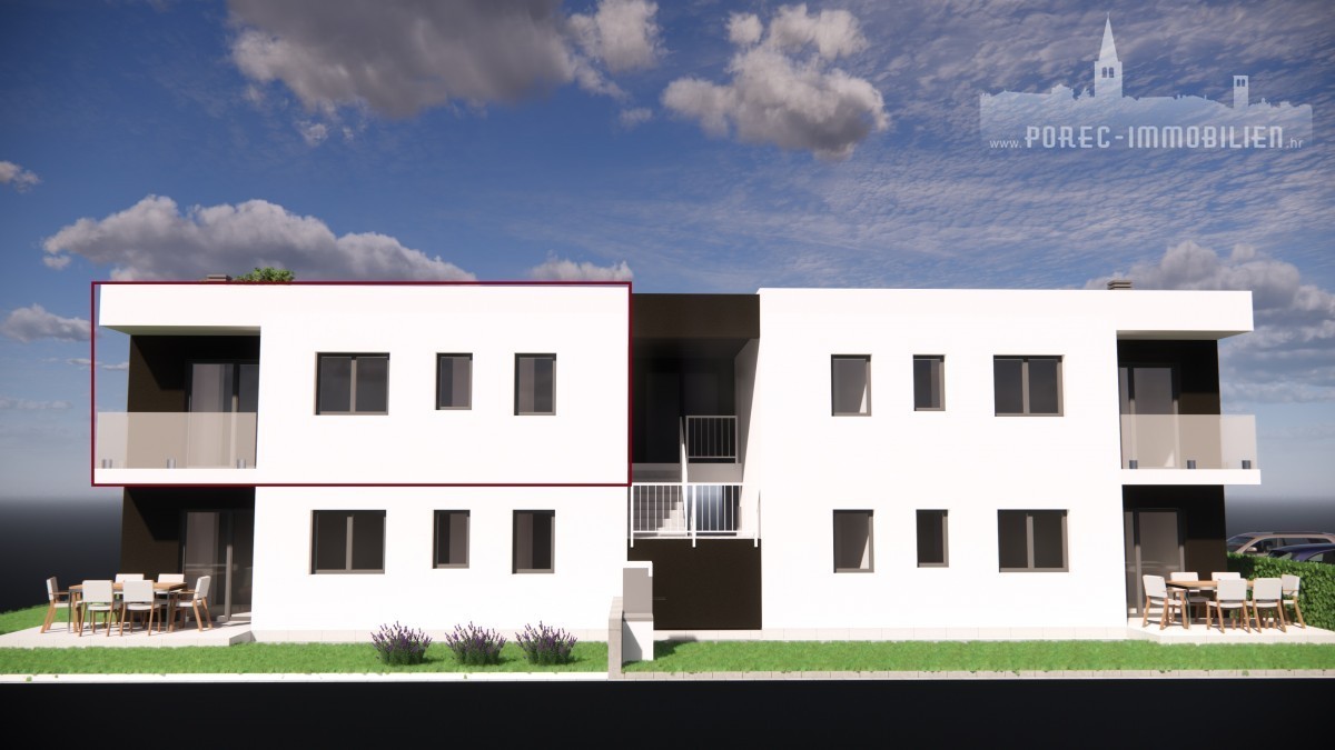 A soli 2 km da Parenzo in vendita l'appartamento al primo piano di un nuovo edificcio.