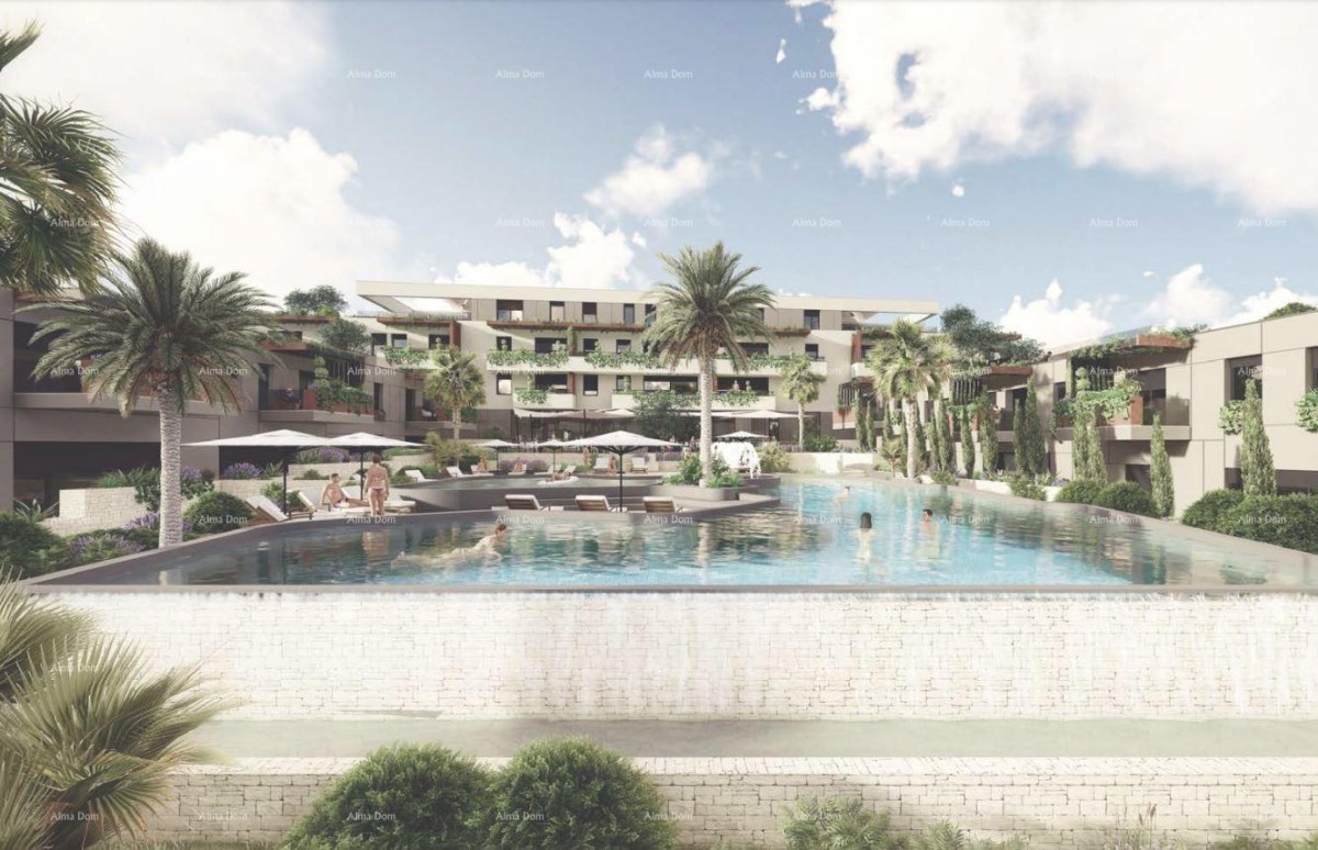 L'edificio residenziale-commerciale è suddiviso in tre unità: il volume centrale, quello meridionale e quello settentrionale. In totale saranno presenti 78 appartamenti e 18 unità commerciali. L'edificio è dotato di piscina e di garage sotterraneo, dove l'appartamento dispone anche di un posto auto in garage, incluso nel prezzo.