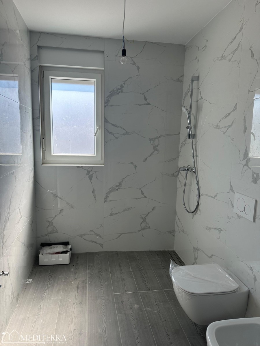 Vendesi appartamento al piano terra in piccola palazzina residenziale di 4 appartamenti. L'appartamento è di 71,95 mq ed è composto da un ingresso, 2 camere da letto, un bagno, un soggiorno con cucina e sala da pranzo in stile "open space", da cui si accede ad un terrazzo coperto e ad una piscina ( 21m2). L'appartamento dispone di 1 posto auto!