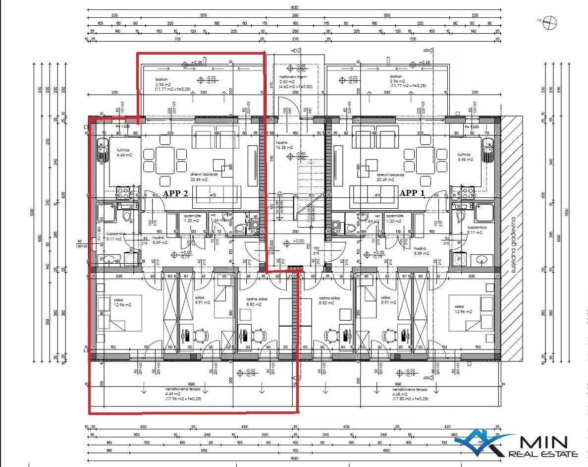 Vendesi appartamento situato al piano terra di una palazzina composta da un totale di 4 appartamenti. L'appartamento si trova in una posizione tranquilla e dista 3 km dal mare e da una bellissima spiaggia paesaggistica, e 800 m dal centro di Tara. L'appartamento è di 81 mq ed è composto da un ingresso, un bagno, un wc, 3 camere da letto e un open space dove si trova una cucina con sala da pranzo e un soggiorno con uscita sul balcone. . Il riscaldamento e il raffreddamento dell'appartamento avviene tramite aria condizionata. L'appartamento può essere utilizzato per scopi residenziali o turistici. Il prezzo dell'appartamento è comprensivo di IVA.
