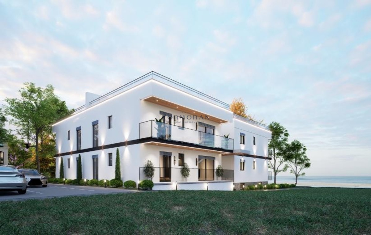 Ogni appartamento è unico nel suo genere e avrà vista sul mare. L’appartamento è composto da ingresso, soggiorno con cucina, 2 camere da letto, 2 bagni e una terrazza di 11,88 m2. Dispone inoltre di una cantina di 11 m2 e a ogni appartamento è assegnato un posto auto con possibilità di ricarica per auto elettriche. Nell’appartamento sarà presente il riscaldamento a pavimento e un climatizzatore inverter (riscaldamento, raffreddamento). Nelle vicinanze dell’edificio si trovano: spiaggia a 1000 m, ristorante a 50 m, panetteria a 50 m, parco giochi a 50 m.