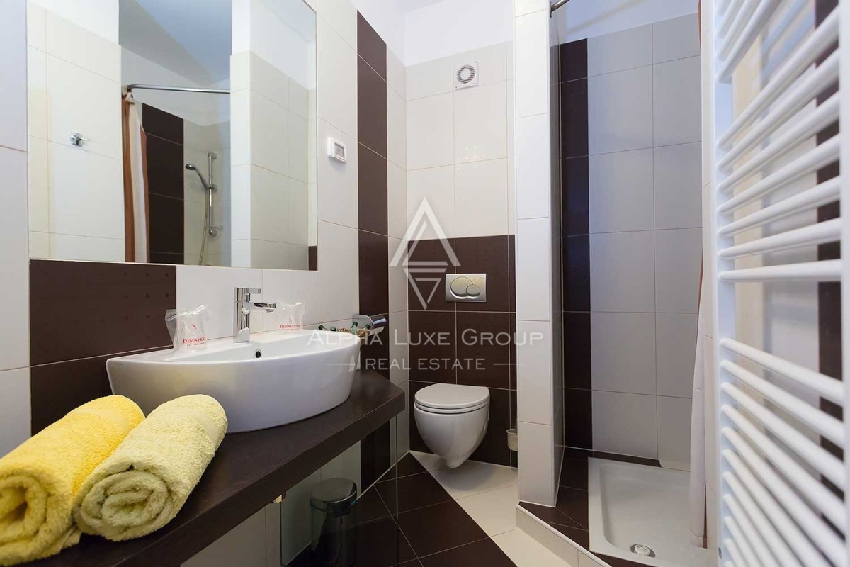 Ci sono nove camere da letto in totale. Una stanza di cinquantaquattro m2 con un soggiorno, una camera da letto e un bagno, una stanza di 37 m2 con una spaziosa camera da letto e un bagno, e sette stanze di 25 m2 con una camera da letto e un bagno, ognuna con il suo balcone di 6 mq.