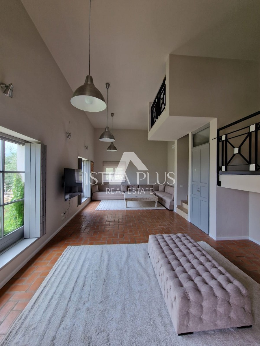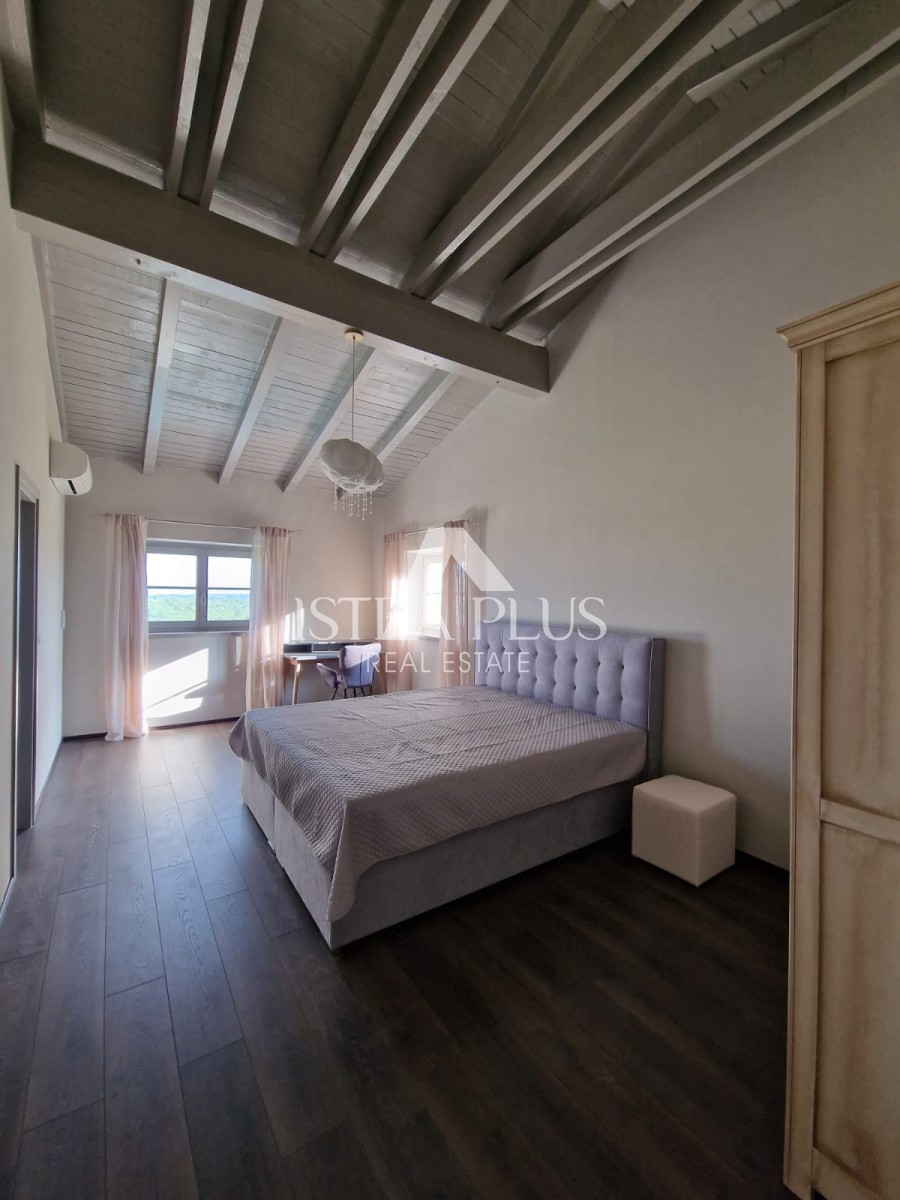 In un tranquillo villaggio non lontano da Parenzo si trova questa incantevole villa in stile rustico, situata in una posizione elevata che offre una vista ininterrotta sul mare e sulla natura incontaminata. Grazie al terreno non edificato di fronte alla casa, la privacy è garantita.