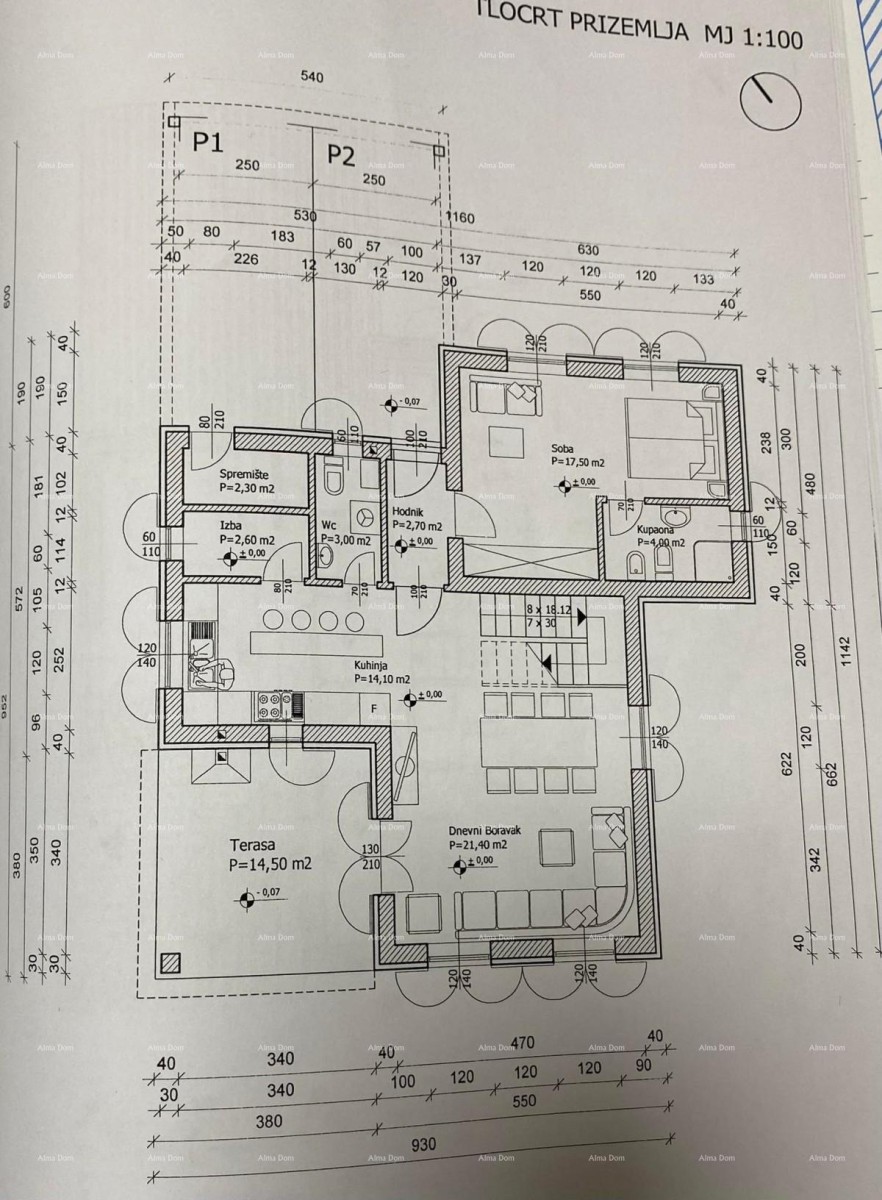 Su un terreno di 998m2 c'è una casa di 195m2, al piano terra c'è un ampio soggiorno con cucina e sala da pranzo, dispensa, piccolo bagno e una camera da letto con il proprio bagno, al piano superiore ci sono 3 camere da letto ciascuna con il proprio bagno e uscita sulla terrazza, piscina di 37m2, cucina estiva e gazebo di 24m2.