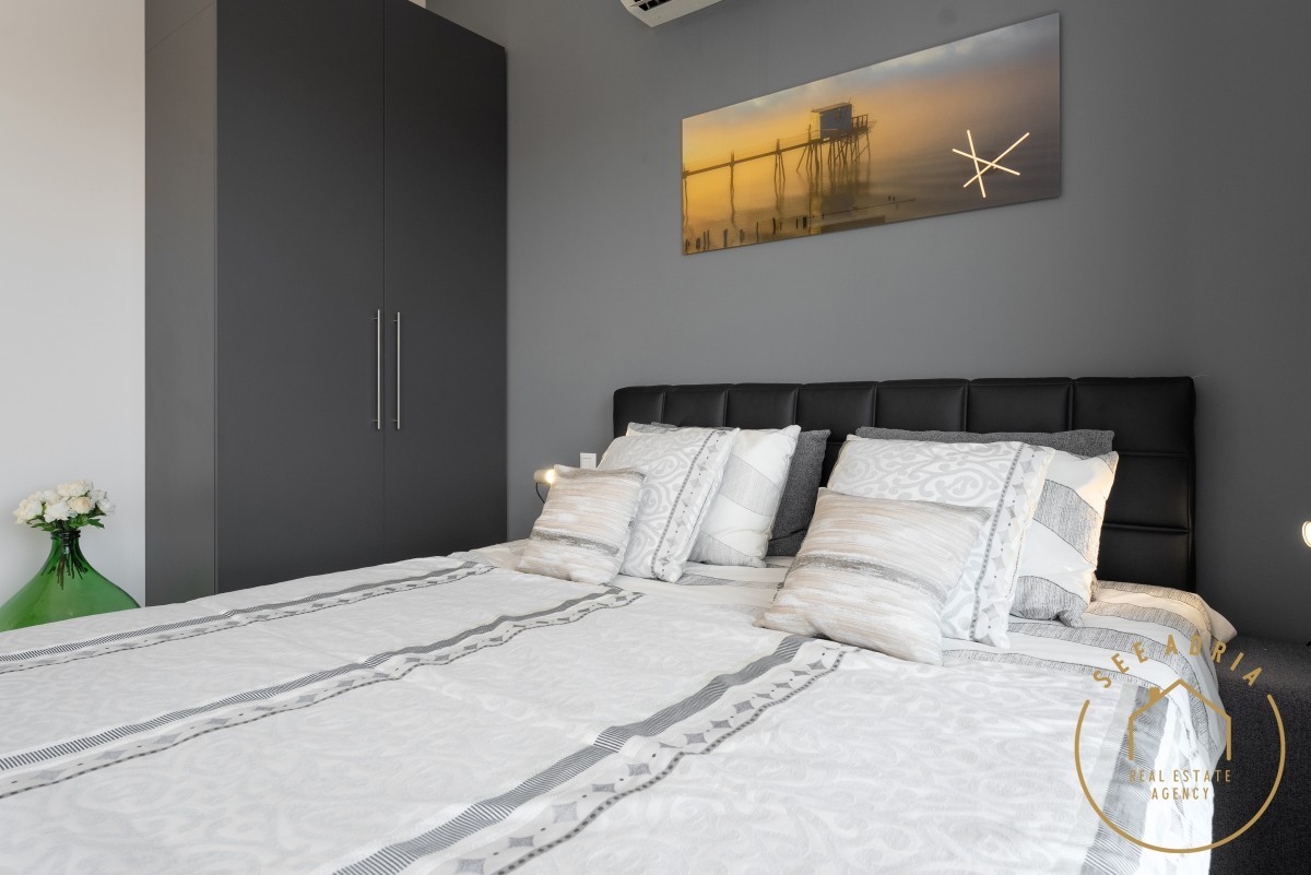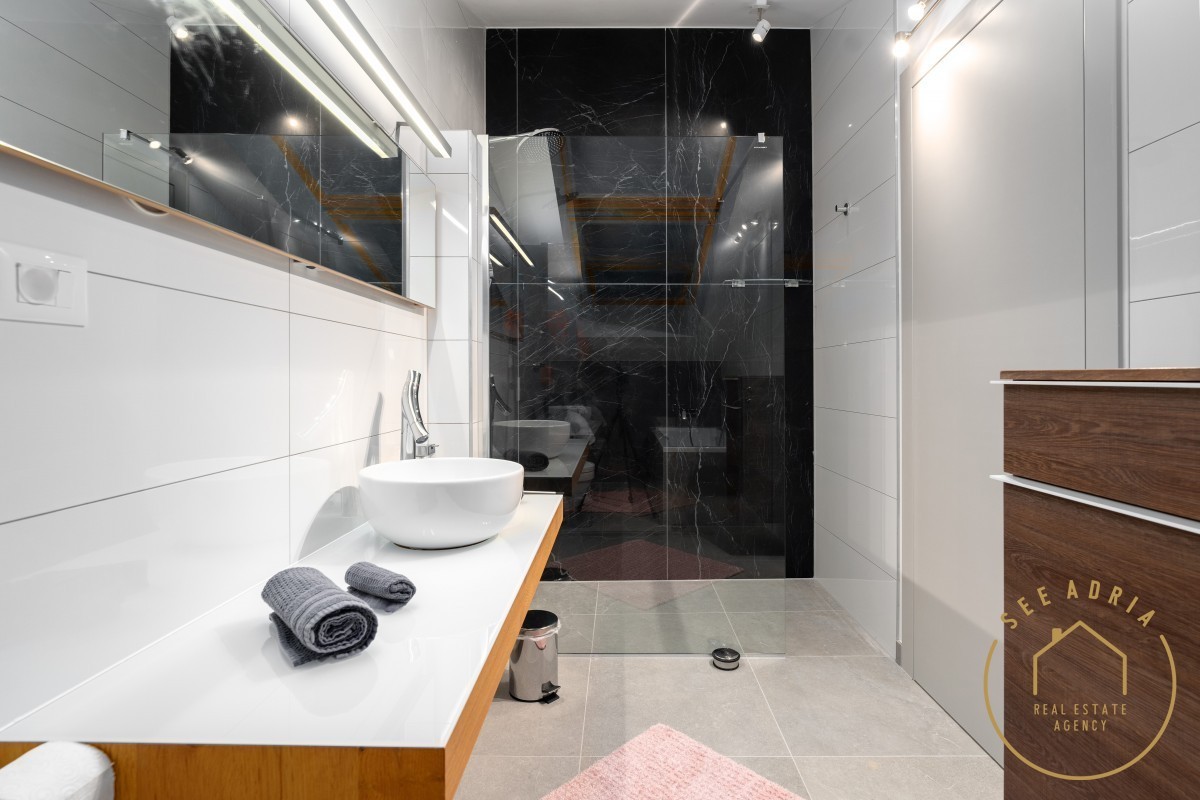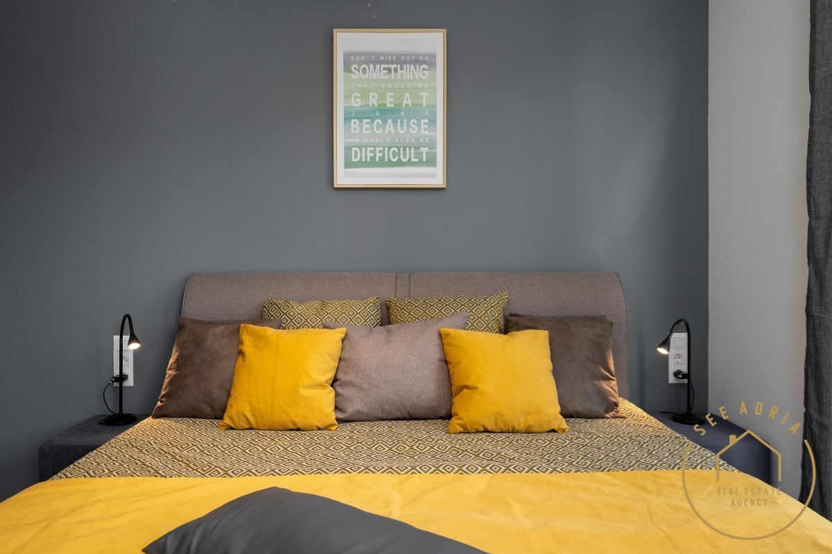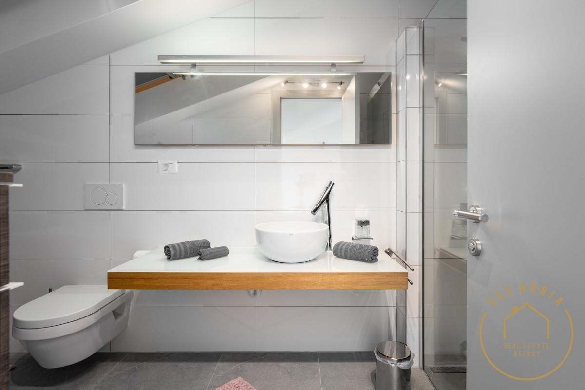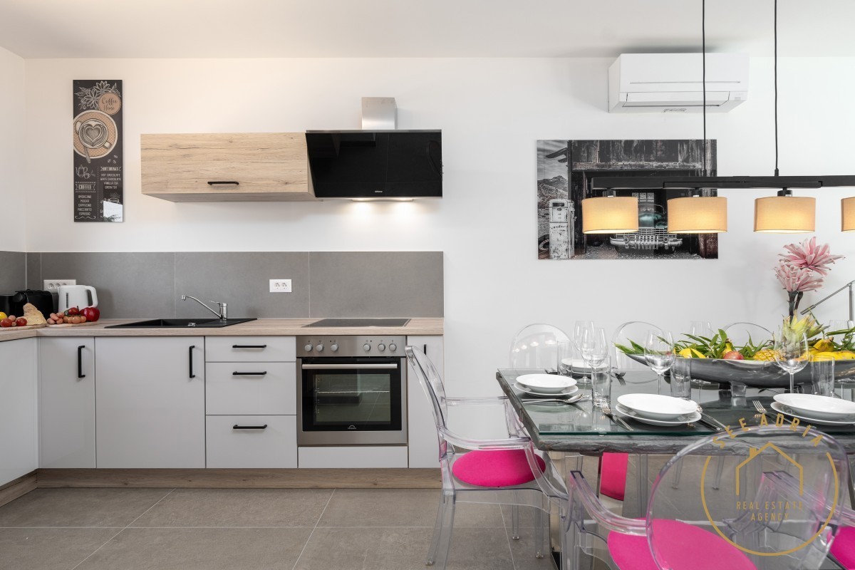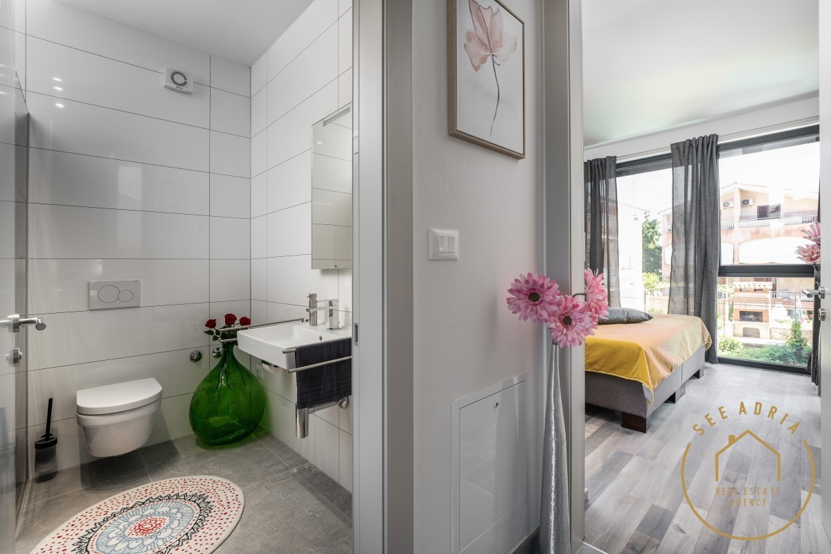 In vendita una casa a schiera con piscina privata. Si trova nel centro di Funtana, a solo un chilometro dalla spiaggia. Al piano terra si trovano la cucina, la sala da pranzo e il soggiorno con accesso a una terrazza privata con piscina. Al piano terra si trovano anche un ripostiglio e un bagno di servizio. Il primo piano è composto da due camere da letto con letti matrimoniali e un bagno. Anche il secondo piano ospita due camere da letto e un bagno. I piani sono collegati da una scala interna.