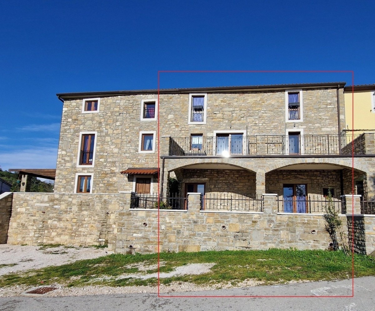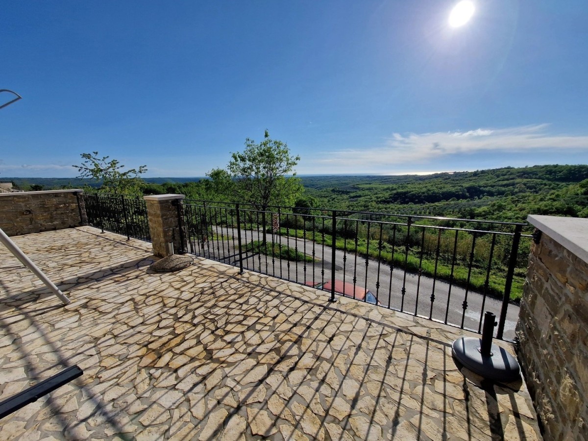 A circa 17 km dal mare e a circa 10 km da Buie, in una posizione attraente, casa in pietra a schiera di circa 200 m2 parzialmente ristrutturata con una bellissima vista panoramica e vista sul mare - terreno di circa 25 m2 - la casa è composta di 3 piani e 3 appartamenti indipendenti, di cui un piano ristrutturato, composto da: cucina/soggiorno/sala da pranzo, bagno, 2 camere da letto e terrazzo.