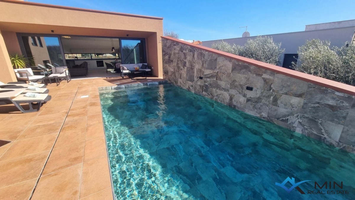 Vendesi casa in costruzione, a 2 km dal centro di Cittanova. La casa è un piano terra ed è composta da un seminterrato e un piano terra con una superficie totale di 170 m2. Il piano terra della casa è composto da ingresso, wc, bagno, 2 camere da letto, cucina con zona pranzo e soggiorno con accesso alla terrazza e alla piscina. Il piano seminterrato è composto da disimpegno, camera, ripostiglio, bagno e cameretta. La casa ha un giardino di 400 m2. La casa può essere utilizzata per scopi residenziali o turistici. La distanza dal mare e dalla bellissima spiaggia è di 2 km.