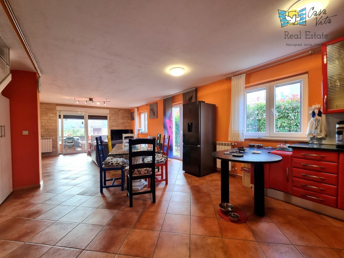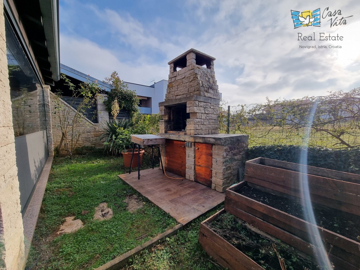La casa bifamiliare si trova in una piccola cittadina istriana a portata di tutti i servizi del luogo, in una posizione tranquilla. È stata costruita nel 2008 su un terreno di 250 m2. Si compone di piano terra e primo piano. Al piano terra si trovano l’ingresso, un ripostiglio/caldaia, un WC e un ampio spazio giorno con cucina, sala da pranzo e soggiorno con camino, con uscita su un ampio terrazzo esterno chiuso e coperto e sul giardino. Tramite una scala interna si accede al primo piano dove si trovano tre camere da letto e un ampio bagno. Il riscaldamento è regolato tramite riscaldamento centralizzato collegato al camino, ed è presente una prima fase per il riscaldamento centralizzato a gas e aria condizionata (in due punti). Davanti alla casa ci sono posti auto, un piccolo deposito legna, mentre dietro la casa si trova una casetta da giardino con terrazza, un piccolo terreno e un barbecue. In questa proprietà non c’è spazio per l’installazione di una piscina! L’intero terreno è recintato, il che è ottimo per chi ha animali domestici. È una buona scelta anche per famiglie con bambini, vista la vicinanza ai servizi (scuola, asilo), e può essere adatta anche per l’affitto.