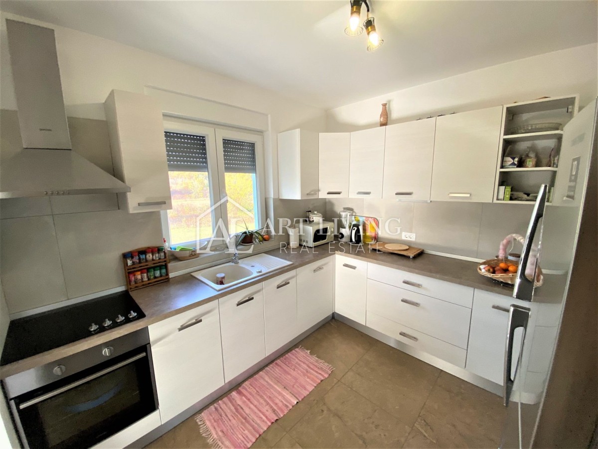 La casa è esposta a sud e circondata da un giardino paesaggistico. Dispone inoltre di diversi posti auto privati e viene venduto completamente arredato.