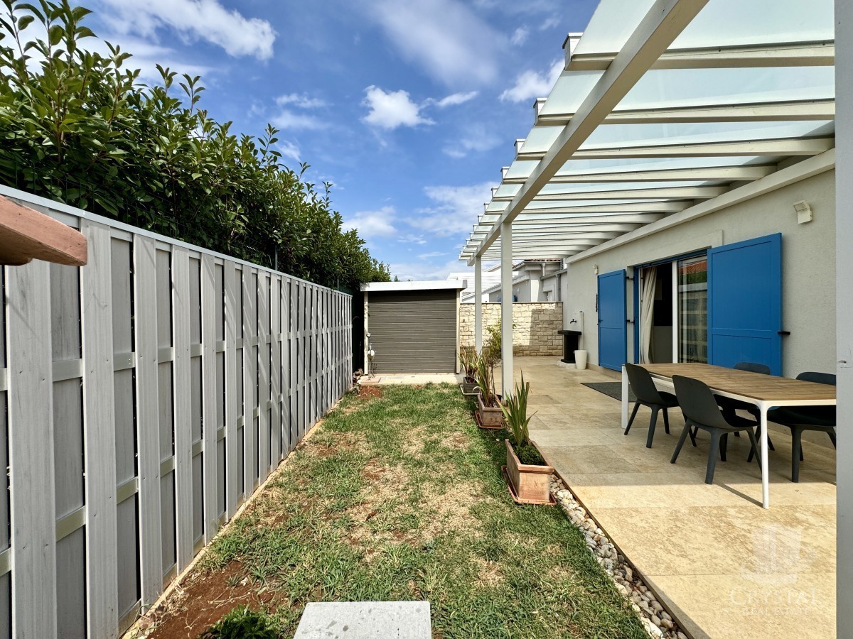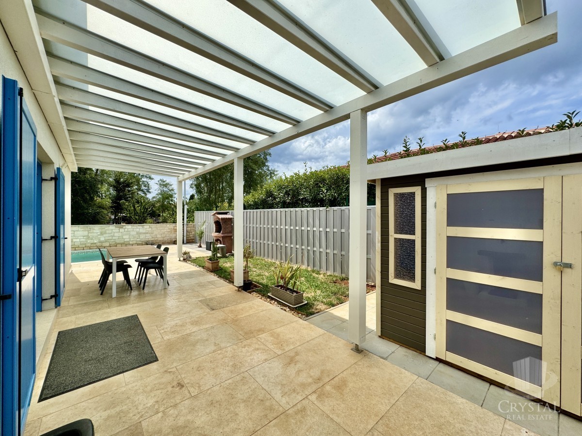 Splendida casa unifamiliare con piscina a Novigrad, situata in una zona tranquilla a solo 1 km dal centro città e a 1 km dalla spiaggia. Costruita nel 2019 con materiali di alta qualità, questa casa offre una disposizione ben studiata con 92 m² di spazio abitabile. Include una cucina, un soggiorno e una zona pranzo open space, due camere da letto spaziose e eleganti, un bagno e un corridoio.