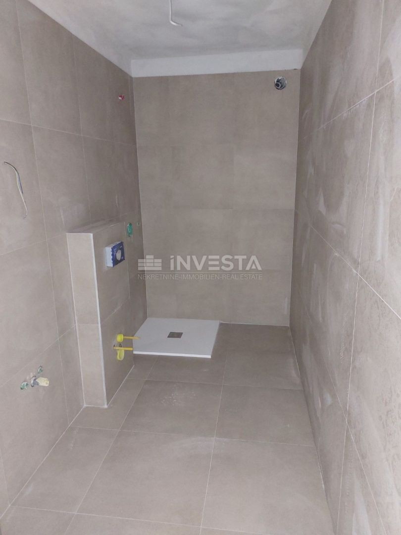 In vendita duplex appartamento in un edificio con 5 unità abitative attualmente in costruzione. Il duplex si estende su due piani, con una superficie totale di 107,43 m². Al primo piano si trovano una cucina con zona pranzo e soggiorno, un bagno e una camera da letto. Una scala interna conduce al sottotetto, dove ci sono due camere da letto, un bagno, una galleria e una spaziosa terrazza di 31 m² con vista aperta sul mare. L'appartamento comprende un posto auto. L'appartamento è riscaldato tramite riscaldamento a pavimento alimentato da una pompa di calore e il riscaldamento e il raffreddamento sono garantiti anche da un'unità di climatizzazione. Gli appartamenti sono dotati di porte antieffrazione e antincendio.