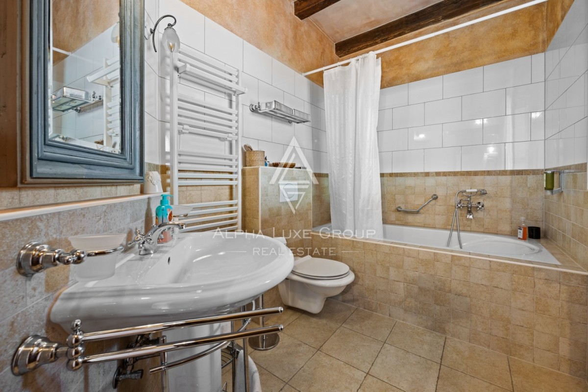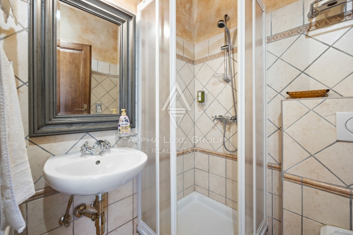 La villa dispone di un seminterrato dove si trova una stanza per lavare e asciugare i panni, una sauna e una cabina doccia. Ha anche un'enoteca lussuosamente arredata dove gli amanti del vino possono godere di un'atmosfera intima e socializzare. Le camere menzionate hanno accesso al giardino. Per le giornate invernali più fredde, la casa dispone di riscaldamento centralizzato a gasolio e due camini, mentre per le calde giornate estive sono stati installati condizionatori d'aria.I pavimenti sono rivestiti in parquet e cotto, che conferiscono allo spazio un fascino unico e si sposano perfettamente con il legno e la pietra.