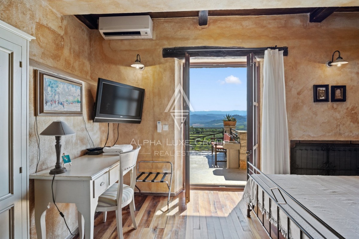 ALPHA LUXE GROUP vende una villa di lusso con una bellissima vista panoramica sulla natura e sulla città di Motovun.