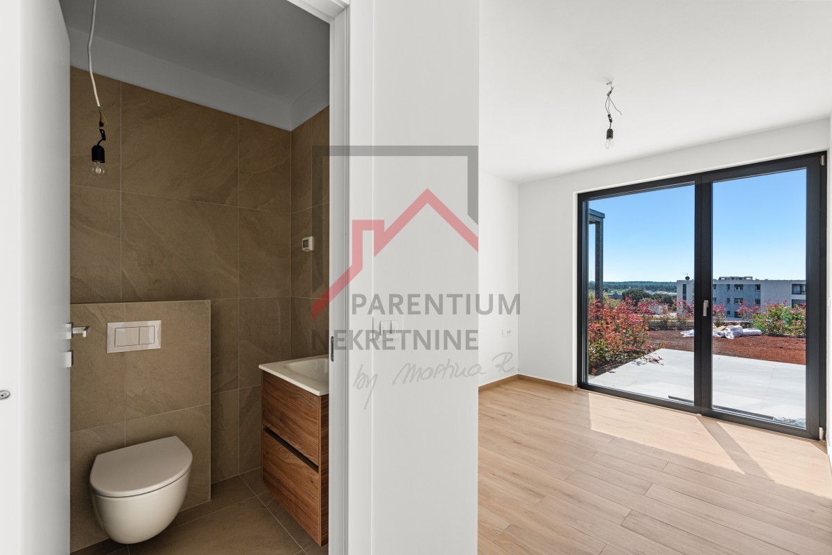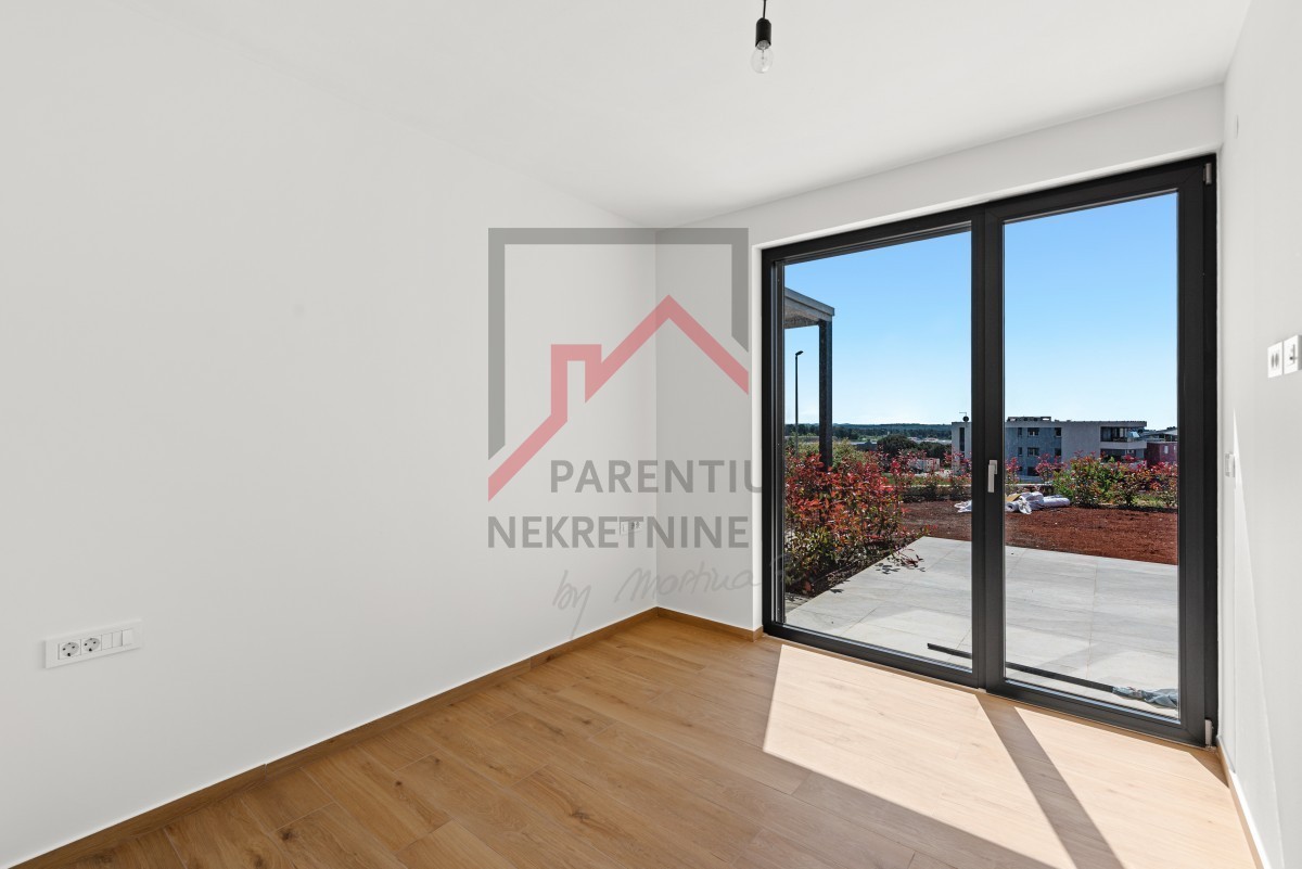 In una tranquilla zona residenziale di Cittanova, a soli 900 metri dal mare, si trova un moderno appartamento al piano terra di un nuovo edificio con otto unità abitative. Questa proprietà combina il comfort della vita familiare, l'elevata efficienza energetica e un'architettura studiata nei minimi dettagli che consente di vivere tutto l'anno.