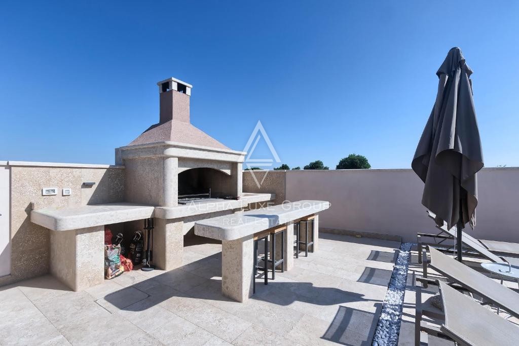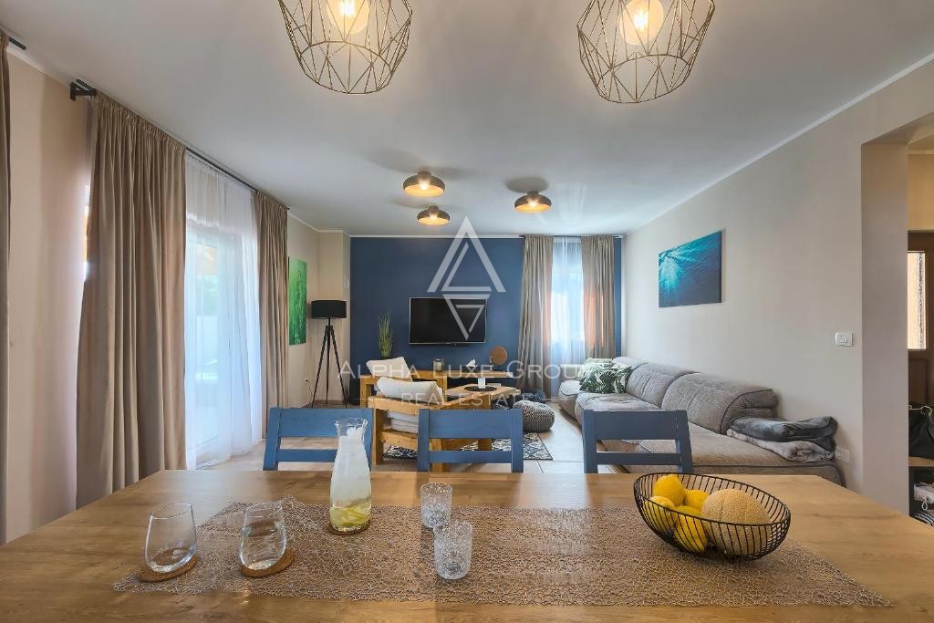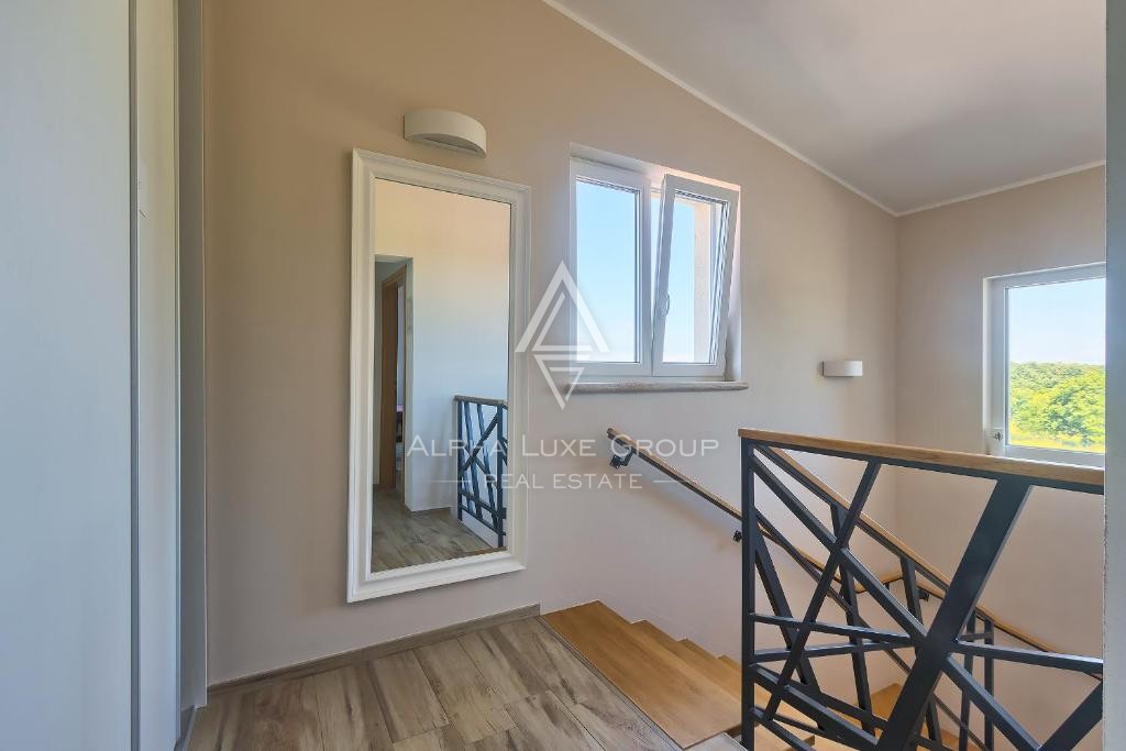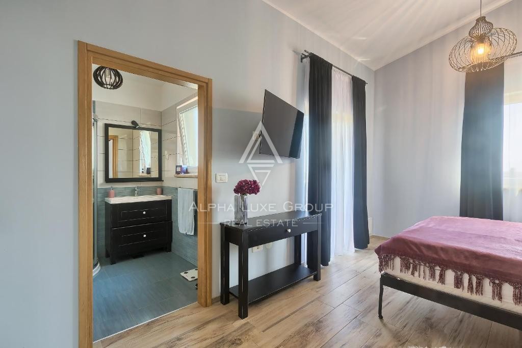 Situata sul tranquillo margine di Ližnjan, questa accogliente villa offre un comfort eccezionale, ampi spazi interni e un raro livello di privacy. Circondata da prati incontaminati su due lati, la proprietà crea un’atmosfera serena ideale per vivere tutto l’anno o per un investimento. La villa si estende su 175 m² distribuiti su due piani, con il piano terra progettato come open space che collega il luminoso soggiorno, la cucina completamente attrezzata e la zona pranzo. Due camere da letto con bagno privato completano il piano inferiore e garantiscono praticità per famiglia e ospiti.