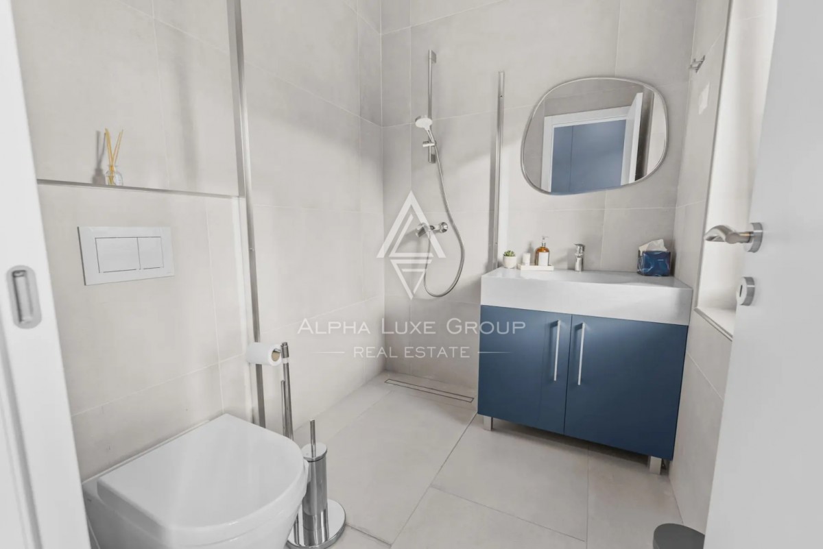 La villa dispone di quattro splendide camere da letto con bagno privato, ciascuna progettata con una propria palette di colori e materiali per creare un’atmosfera rilassante. La magnifica suite padronale comprende un bagno privato, una cabina armadio e una terrazza coperta di 27 m² con vista panoramica che si estende fino al mare — perfetta per ammirare l’alba e il tramonto.