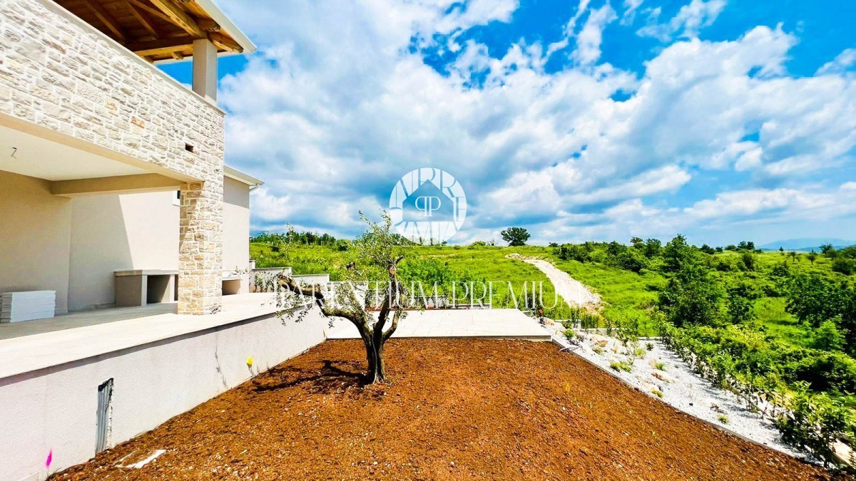 Al piano superiore ci sono 3 camere da letto con i propri bagni e uscite su terrazze con una vista fenomenale sull'interno dell'Istria e sul suo bellissimo paesaggio ricco di vigneti e uliveti.