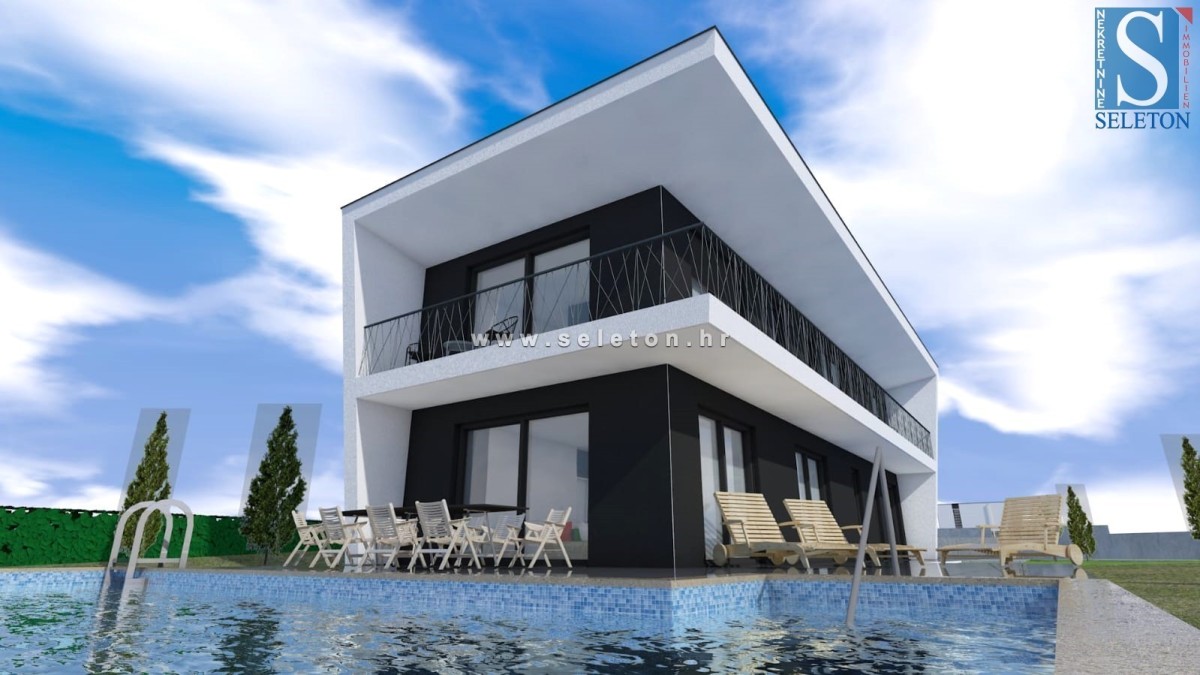È in vendita una casa indipendente con una superficie totale di 243 m², composta da soggiorno, cucina, sala da pranzo, terrazza, locale tecnico/lavorativo, bagno per gli ospiti e una camera da letto con bagno al piano terra della casa, oltre a disimpegno, tre camere da letto con bagni e balcone al piano primo dell'abitazione. La casa avrà una piscina di 36 mq, una cucina estiva di 24 mq e un ripostiglio per piscina di 5 mq, riscaldamento a pavimento, aria condizionata in tutte le camere da letto e nel soggiorno, allarme, irrigazione automatica del giardino, videosorveglianza e 3 posti auto. La casa è costruita su un terreno di 1.080 m², si trova in un villaggio a ca. 12 km dal mare/spiaggia ea ca. 11 km da Poreč-Parenzo.