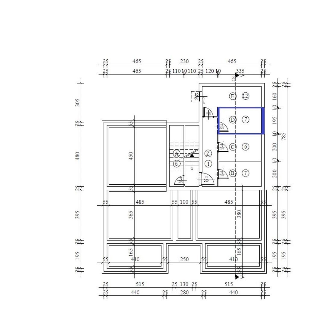 Appartamento D al Primo Piano, Superficie Netta 64,56 m² (corridoio, due camere da letto, bagno con finestra, cucina con soggiorno e terrazza), cantina nel seminterrato 6,53 m².