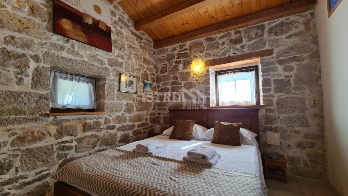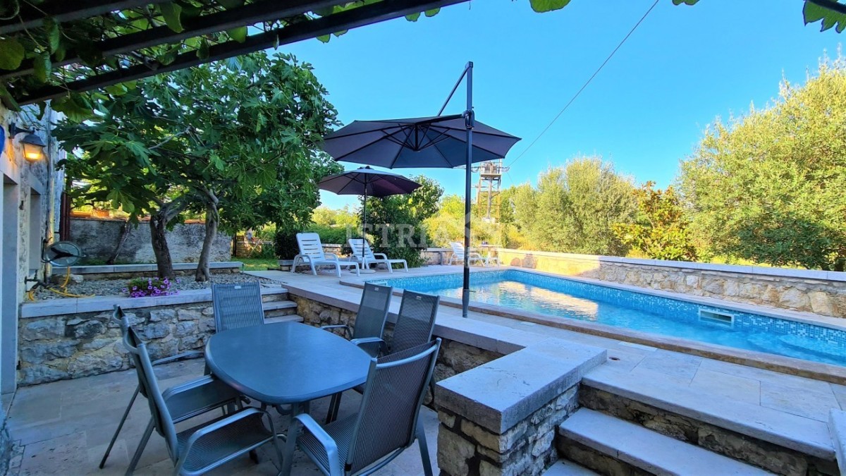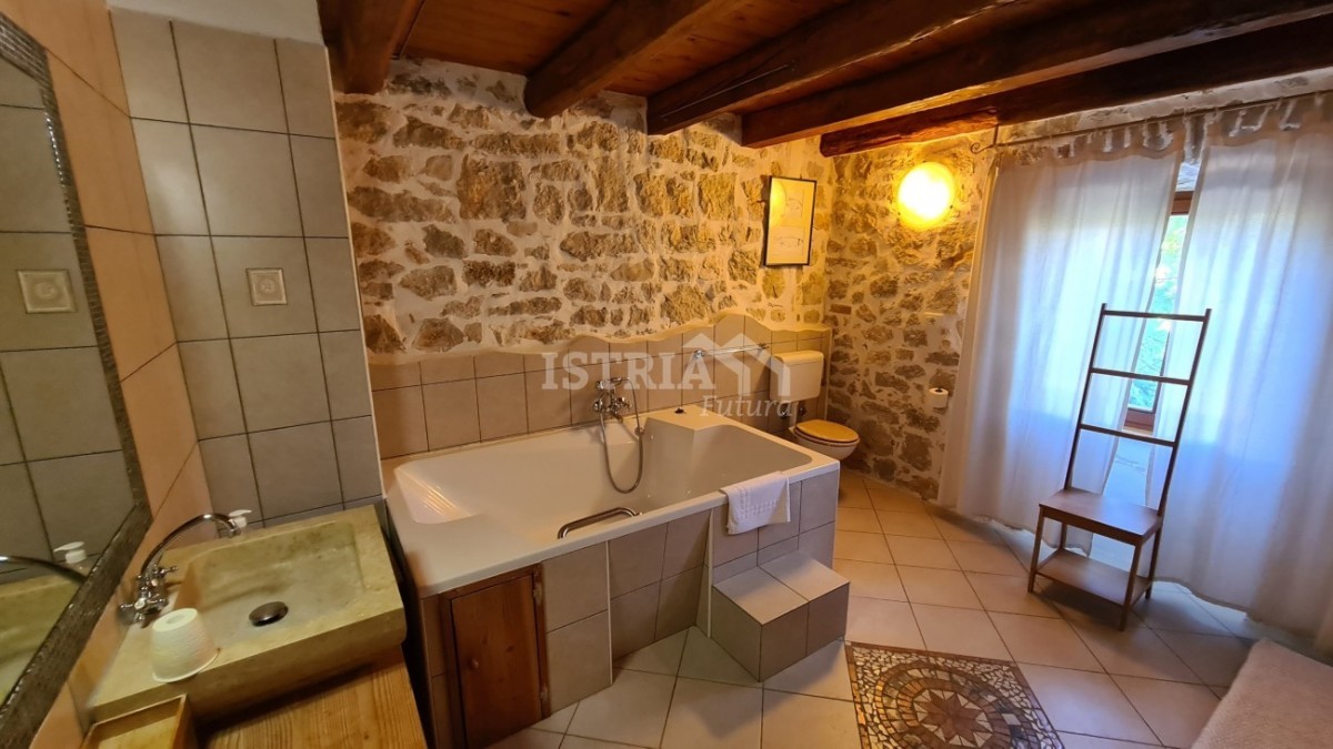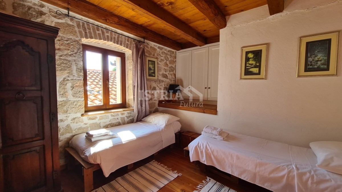 In vendita un'incantevole casa in pietra ristrutturata con una superficie totale di 240 m², situata su un terreno di 530 m² con piscina e 2 posti auto coperti. La casa si trova in una posizione bellissima, tranquilla e riservata, a 8 km dal centro di Parenzo e dal mare.