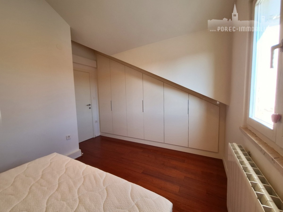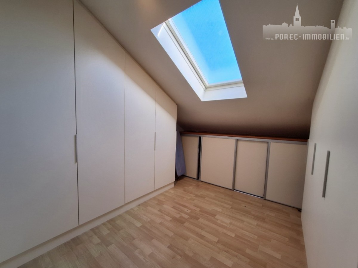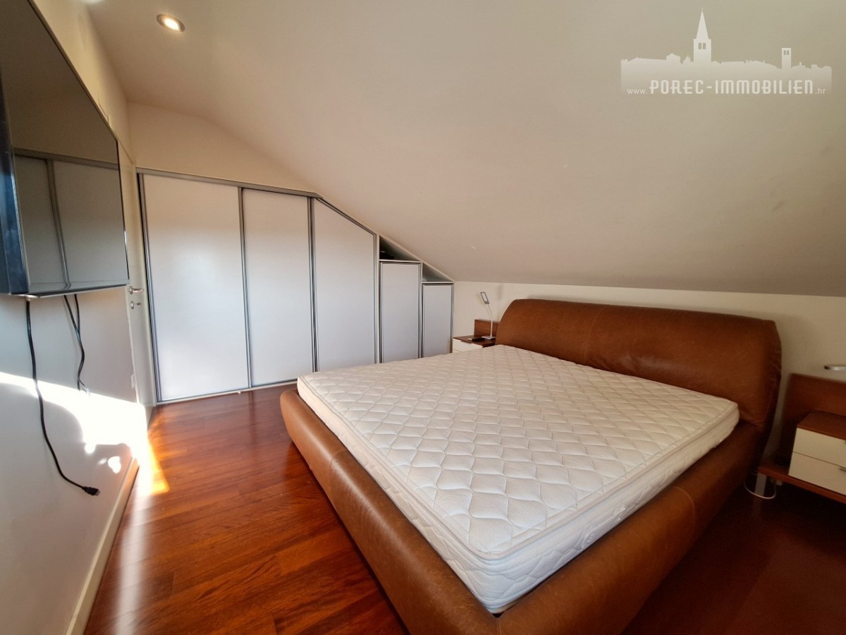A Parenzo, a soli 500 m dal mare, vendiamo un confortevole appartamento con tre camere e mezzo in un piccolo edificio residenziale. L'appartamento si trova al 2° piano (sottotetto) ed è composto da 3 camere da letto, un guardaroba (che può fungere anche da studio), un soggiorno con uscita su un ampio balcone, due bagni, cucina e sala da pranzo.