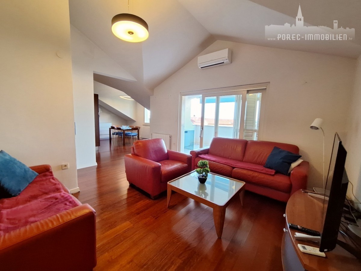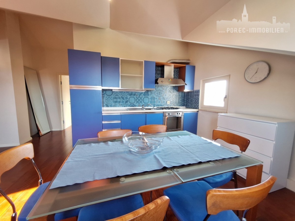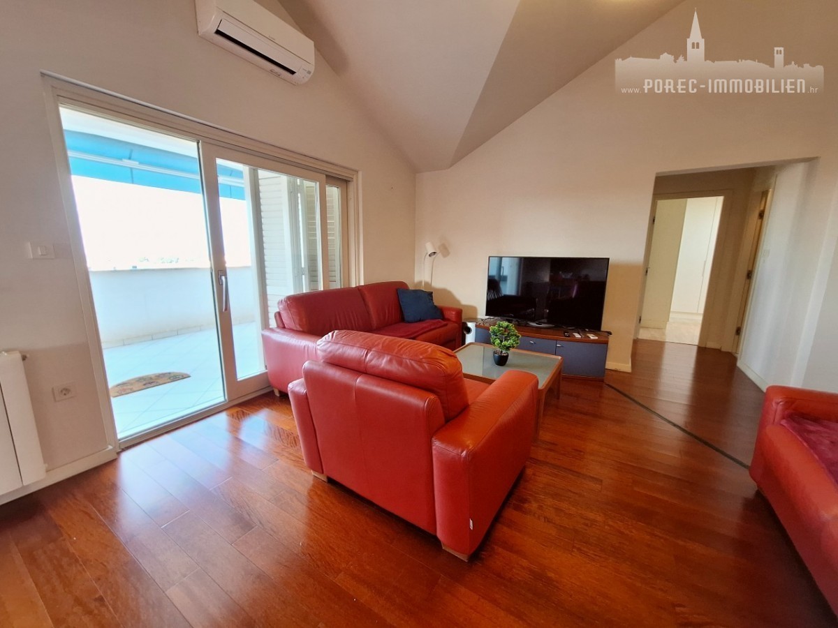 A Parenzo, a soli 500 m dal mare, vendiamo un confortevole appartamento con tre camere e mezzo in un piccolo edificio residenziale. L'appartamento si trova al 2° piano (sottotetto) ed è composto da 3 camere da letto, un guardaroba (che può fungere anche da studio), un soggiorno con uscita su un ampio balcone, due bagni, cucina e sala da pranzo.