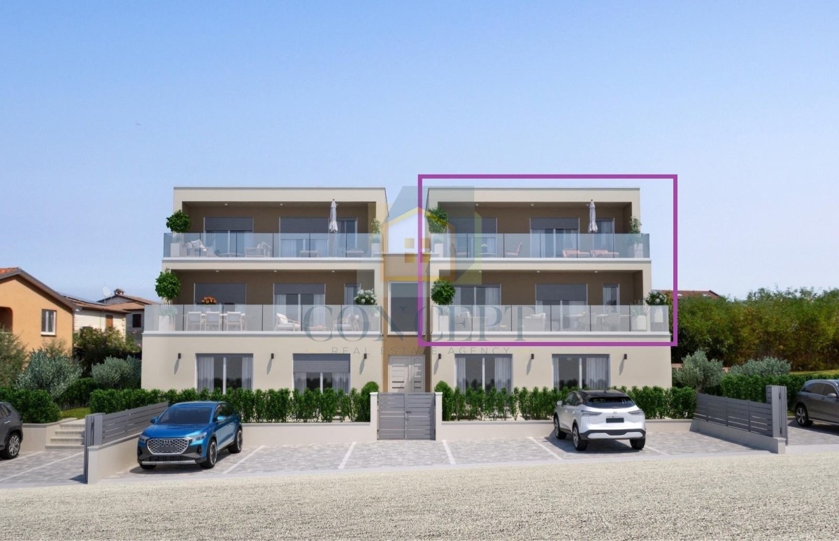In una posizione tranquilla a soli 7 km da Poreč e dal mare, viene venduto un appartamento su due livelli in un edificio in costruzione, che sarà composto da un totale di quattro unità abitative.