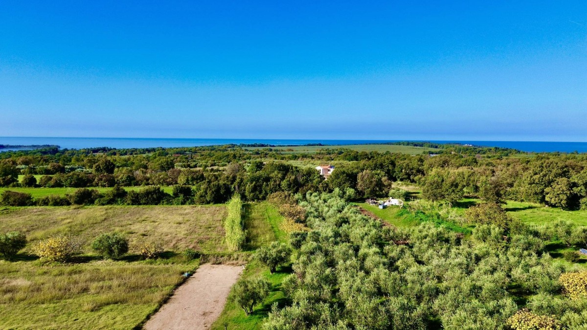 POREČ, PERIFERIA 9 KM, ECCELLENTE TERRENO EDIFICABILE CON VISTA MARE