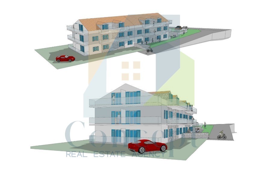 Il proprietario ha redatto un piano preliminare per la costruzione di un edificio bifamiliare con un totale di quattro unità abitative, offrendovi la possibilità di creare una casa confortevole o un progetto d'investimento redditizio.