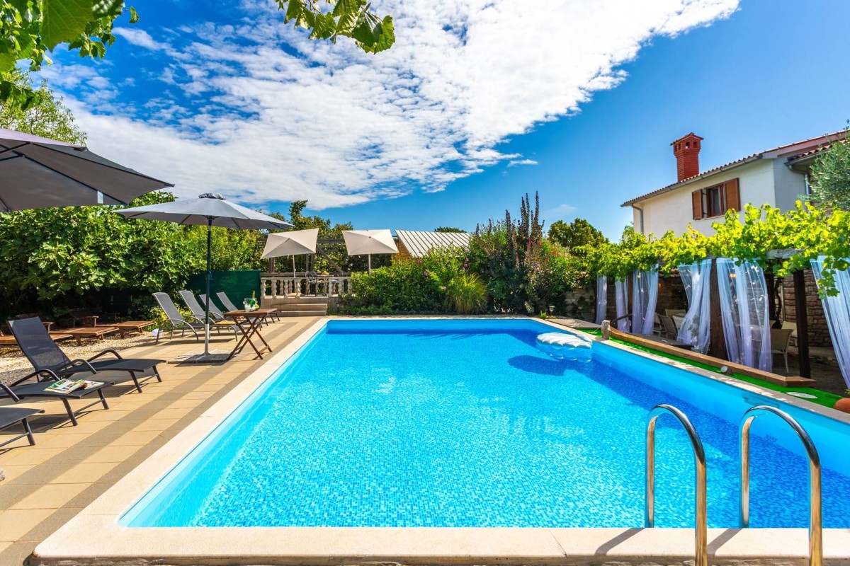 La casa è stata costruita nel 2001 in stile istriano (la maggior parte in pietra) e da allora è stata costantemente mantenuta con cura da un buon proprietario, ad esempio recentemente sono stati completamente sostituiti gli infissi esterni con nuovi infissi in alluminio, la facciata è stata rinnovata con nuova coibentazione, è stato rifatto il tetto sull’edificio accessorio (che ha una superficie di 25 m2) ed è di datazione più vecchia rispetto alla casa.