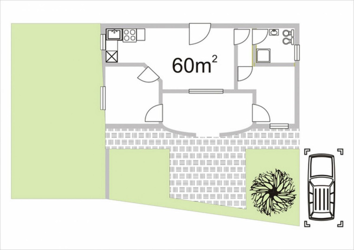 L’appartamento di 60 m2 si trova al piano terra dell’edificio e dispone di un bel giardino di 60 m2 e di un posto auto davanti all’edificio.