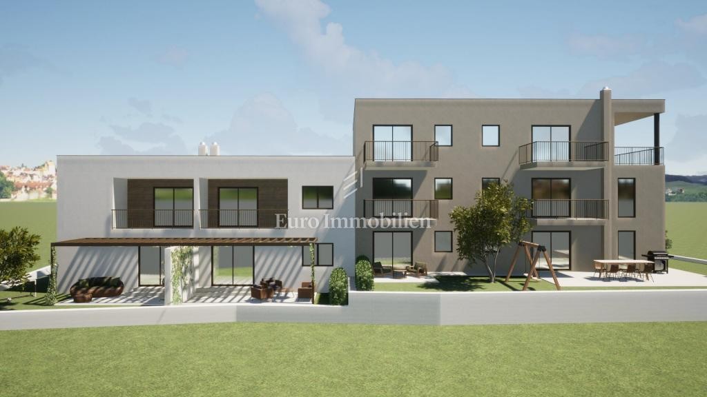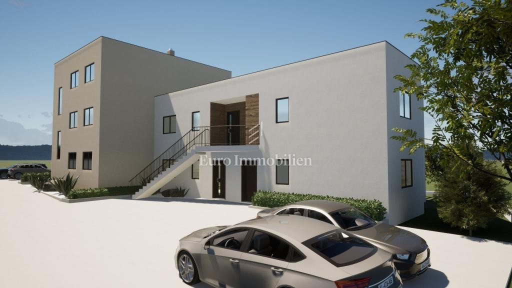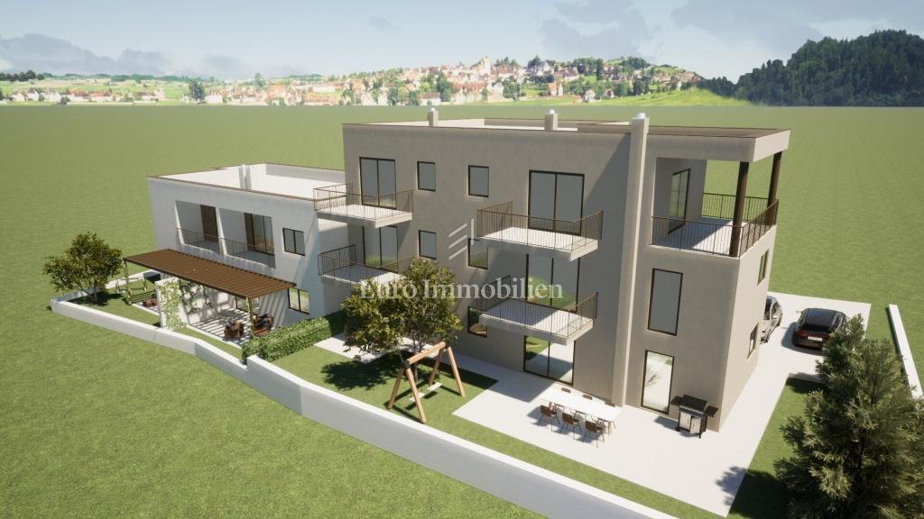 Apartment 3 is located on the first floor and consists of an entrance hall, two bedrooms, bathroom, living room, kitchen, dining room and a 6.40m2 loggia. The apartments will be completed up to the furnishing phase, including high-quality ceramics and sanitary ware, electric underfloor heating, air conditioning, and interior wooden and exterior PVC joinery. Each apartment has 2 parking spaces. The expected completion of construction is the end of 2026. The buyer is exempt from paying real estate tax!