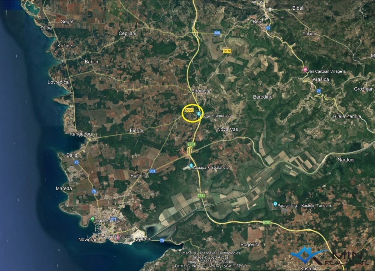 Terreno in vendita in una posizione tranquilla a Verteneglio. Il terreno è a scopo economico o commerciale e ha un totale di 15.000 m2, di cui 10.000 m2 edificabili e 5.000 m2 destinati all'agricoltura. Il coefficiente di costruzione più alto consentito è del 30%.