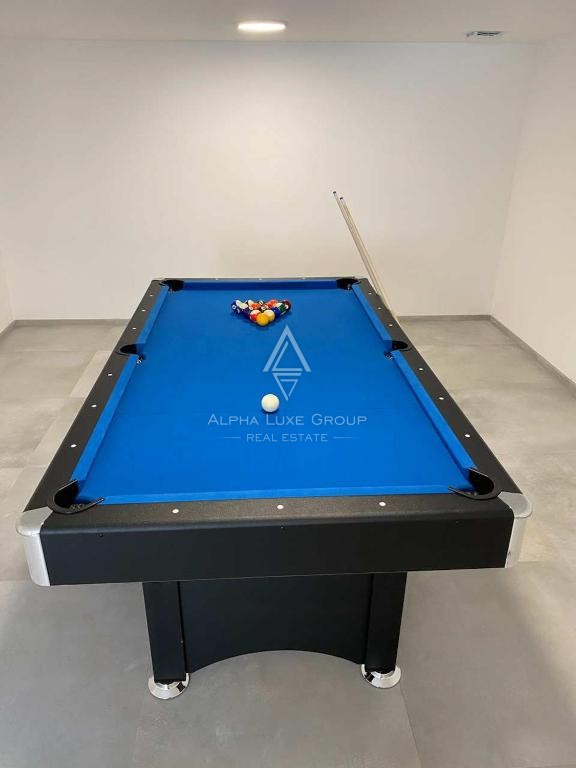 La casa è costruita con materiali di alta qualità ed è dotata di aria condizionata e pompa di calore per un riscaldamento e raffrescamento efficienti. Il giardino privato comprende una piscina, un solarium, una cucina estiva e un'area verde paesaggistica. Inoltre, la proprietà dispone di due posti auto.