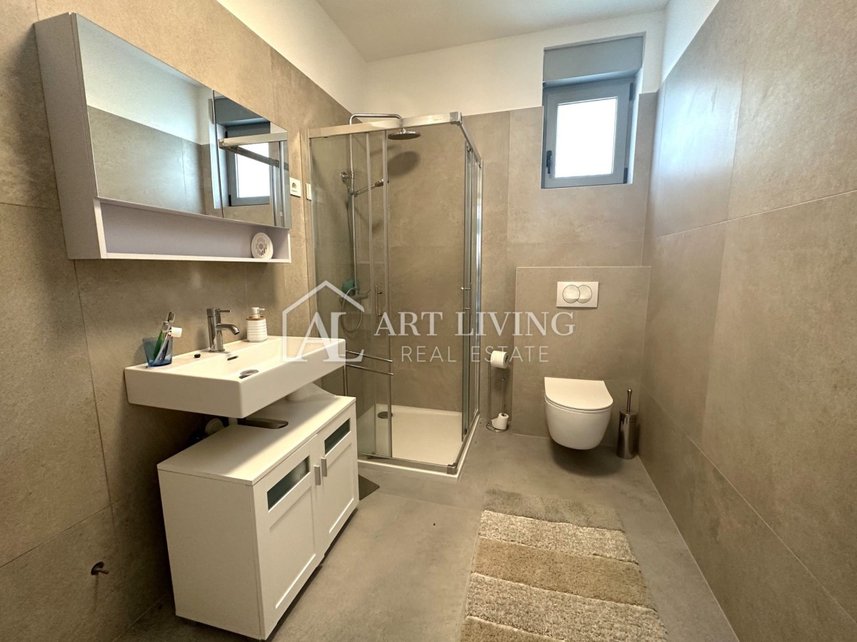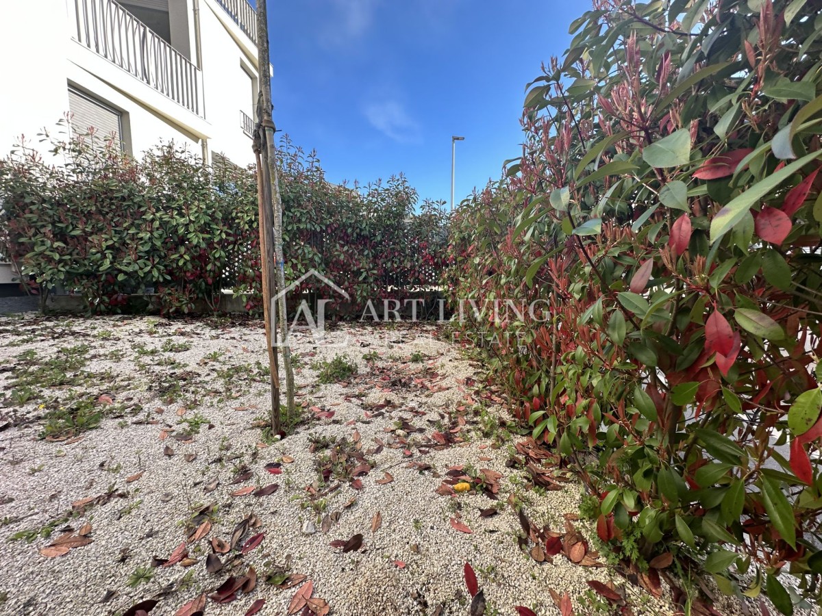 In vendita un moderno appartamento con ampio giardino privato in una posizione attraente, a soli 300 m dal mare e dalle spiagge, 3,5 km dalla città di Umago, 2 km da un campo da golf e 9 km dal confine con la Slovenia.