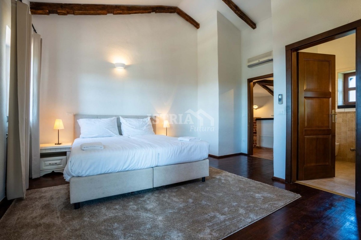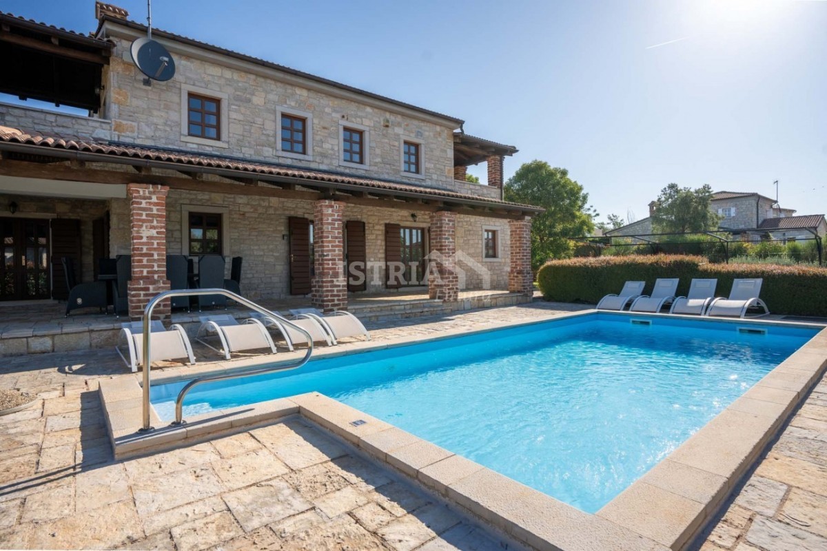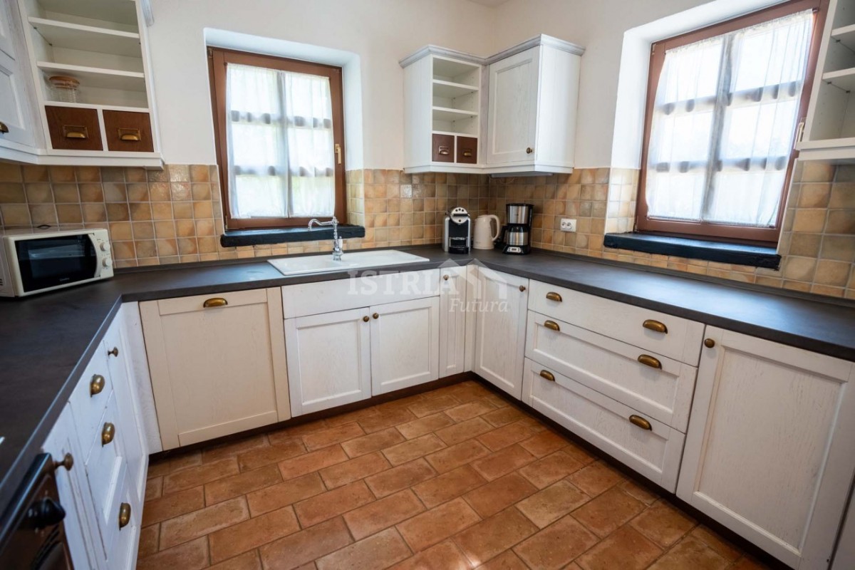 In vendita, una splendida villa in pietra di 260 m² distribuiti tra piano terra e primo piano, situata su un terreno recintato e curato di 1.082 m², a 2,5 km da San Lorenzo, 10 km da Leme (mare) e 15 km da Parenzo.