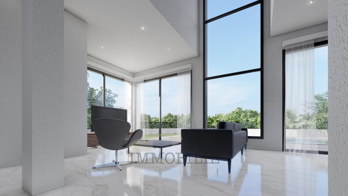 In una splendida posizione sul lato occidentale dell'Istria, c'è una moderna ed elegante villa in costruzione. È circondata da un uliveto ed è ideale per tutti i veri amanti della natura che cercano un luogo per una vita confortevole in completa privacy. Con uno spazio abitativo di 149 m², il piano terra comprende un soggiorno, una sala da pranzo e una cucina, due ripostigli e un bagno con doccia. Nel seminterrato della villa c'è una sala tecnica di 7 m². Il sistema di riscaldamento sarà risolto utilizzando una pompa di calore e riscaldamento a pavimento. Avrà anche un recuperatore d'aria (espulsione dell'aria viziata e fornitura di aria pulita e filtrata). Ogni stanza avrà un termostato che regola il riscaldamento e il raffreddamento della stessa stanza. Al primo piano ci sono due bagni e tre camere da letto, una delle quali avrà un ulteriore guardaroba. Ogni finestra sarà composta da vetro isolante triplo e tapparelle elettriche. Le porte d'ingresso Pivot antieffrazione senza cerniere classiche rendono la porta straordinaria e conferiscono alla proprietà un'impressione di un livello di design superiore. La villa avrà anche un sistema Smart Home che fornisce la possibilità di collegare tutti i dispositivi intelligenti (es. TV, lavatrice, frigorifero, ecc.), aria condizionata e riscaldamento, ventilazione, citofono e tapparelle. A richiesta del cliente, è possibile collegare videosorveglianza, allarme, riscaldamento della piscina, pannelli solari e un caricatore per veicoli elettrici. La cucina estiva sarà composta da una superficie di lavoro e dall'installazione di acqua e scarico.
