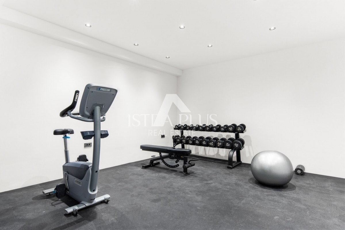 Al piano terra si trovano una camera da letto con bagno e accesso al cortile, un bagno per gli ospiti, un ripostiglio, una cucina e una sala da pranzo con soggiorno da cui si accede alla terrazza e al cortile dove si trova una zona prendisole. zona e una piscina di 50 mq. C'è anche una cucina estiva con zona pranzo all'aperto. Al piano terra si trova anche un'area Wellness con sauna, zona relax e doccia.