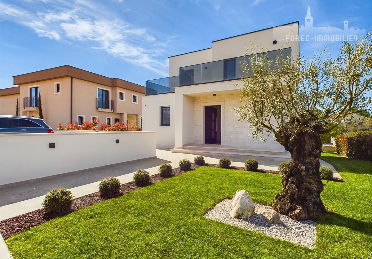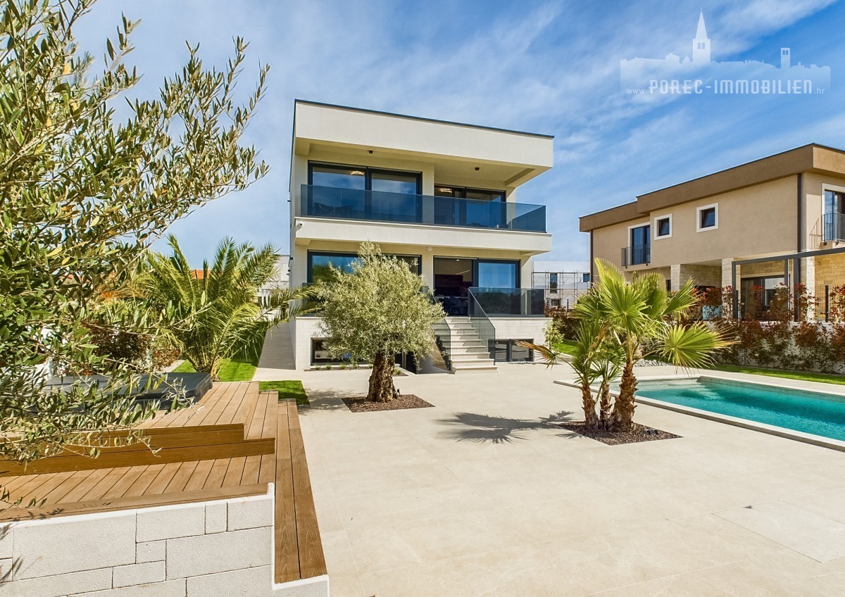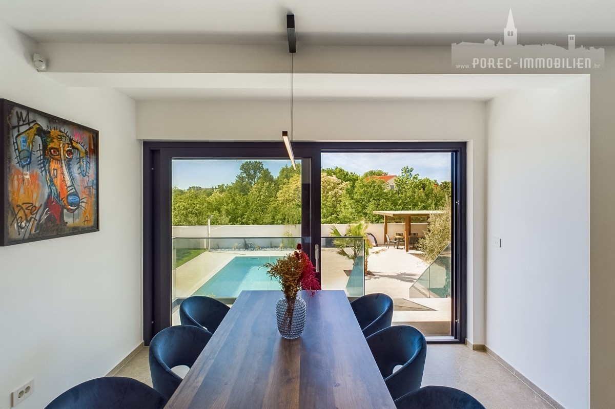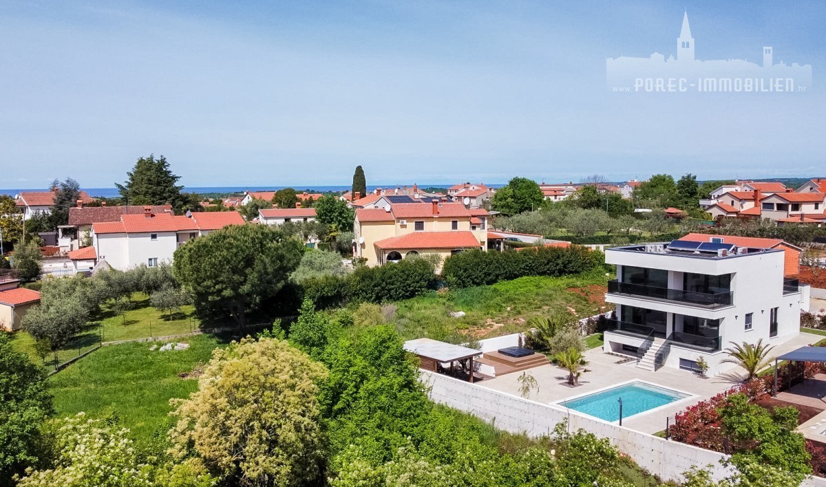 Vendesi la villa moderna situata a Parenzo, a soli 2 km dal mare. La proprietà offre la superficie netta di 217,43 m2 e dispone di una vista mozzafiato sui rigogliosi dintorni. Si compone di seminterrato, piano terra e primo piano e si trova su un terreno di 707 mq.