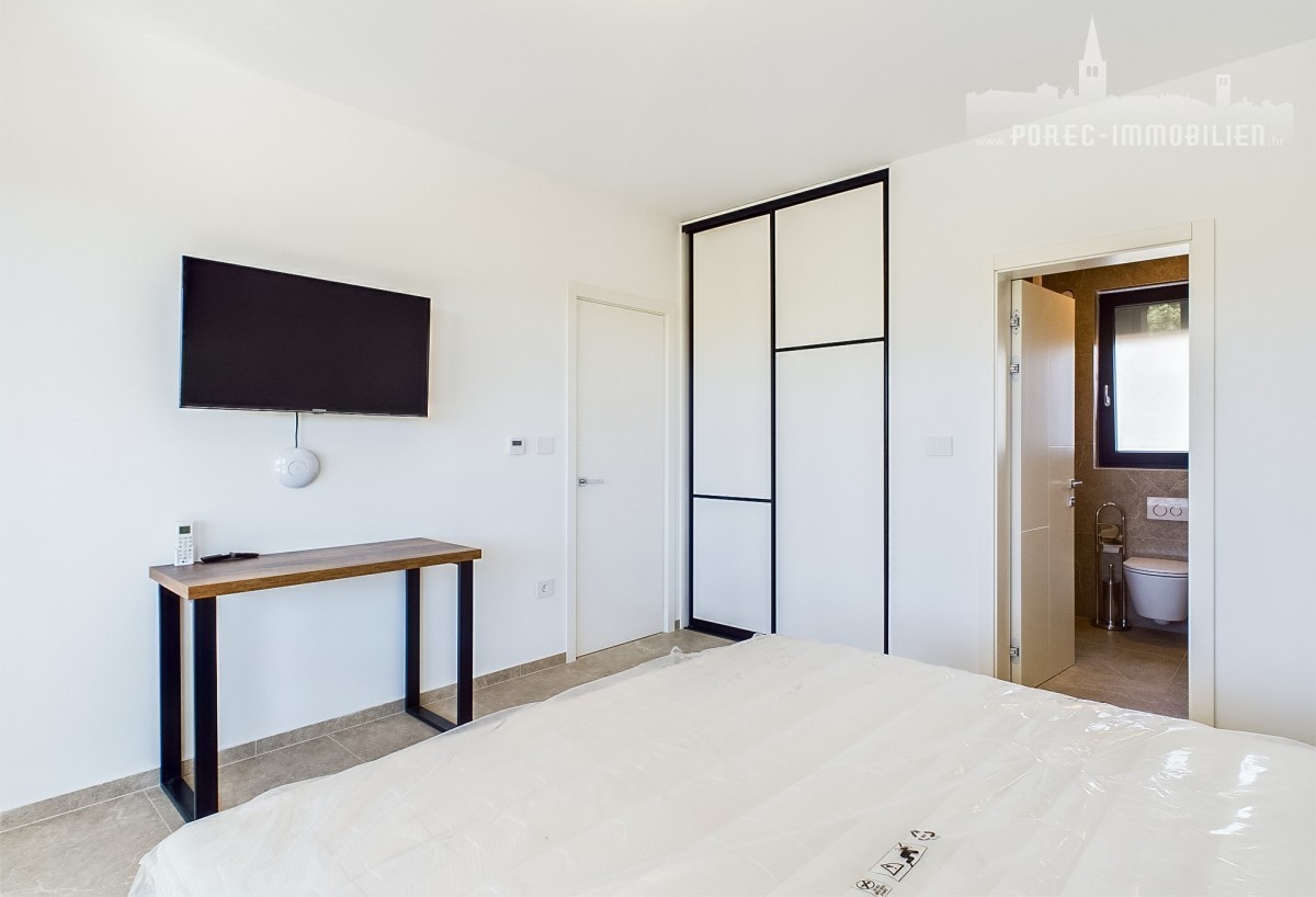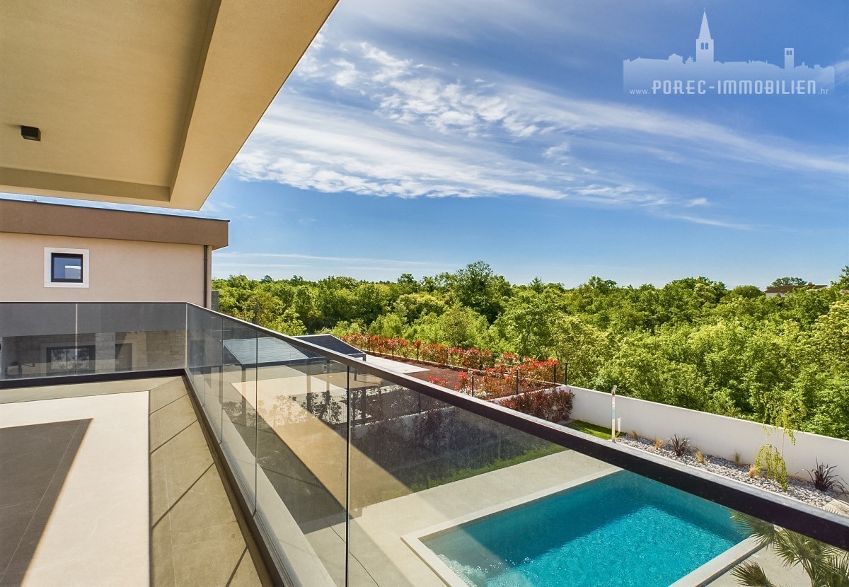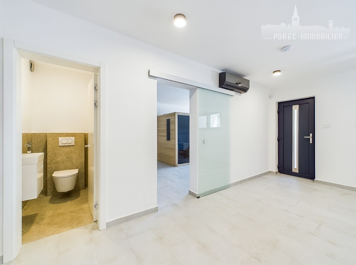 Vendesi la villa moderna situata a Parenzo, a soli 2 km dal mare. La proprietà offre la superficie netta di 217,43 m2 e dispone di una vista mozzafiato sui rigogliosi dintorni. Si compone di seminterrato, piano terra e primo piano e si trova su un terreno di 707 mq.