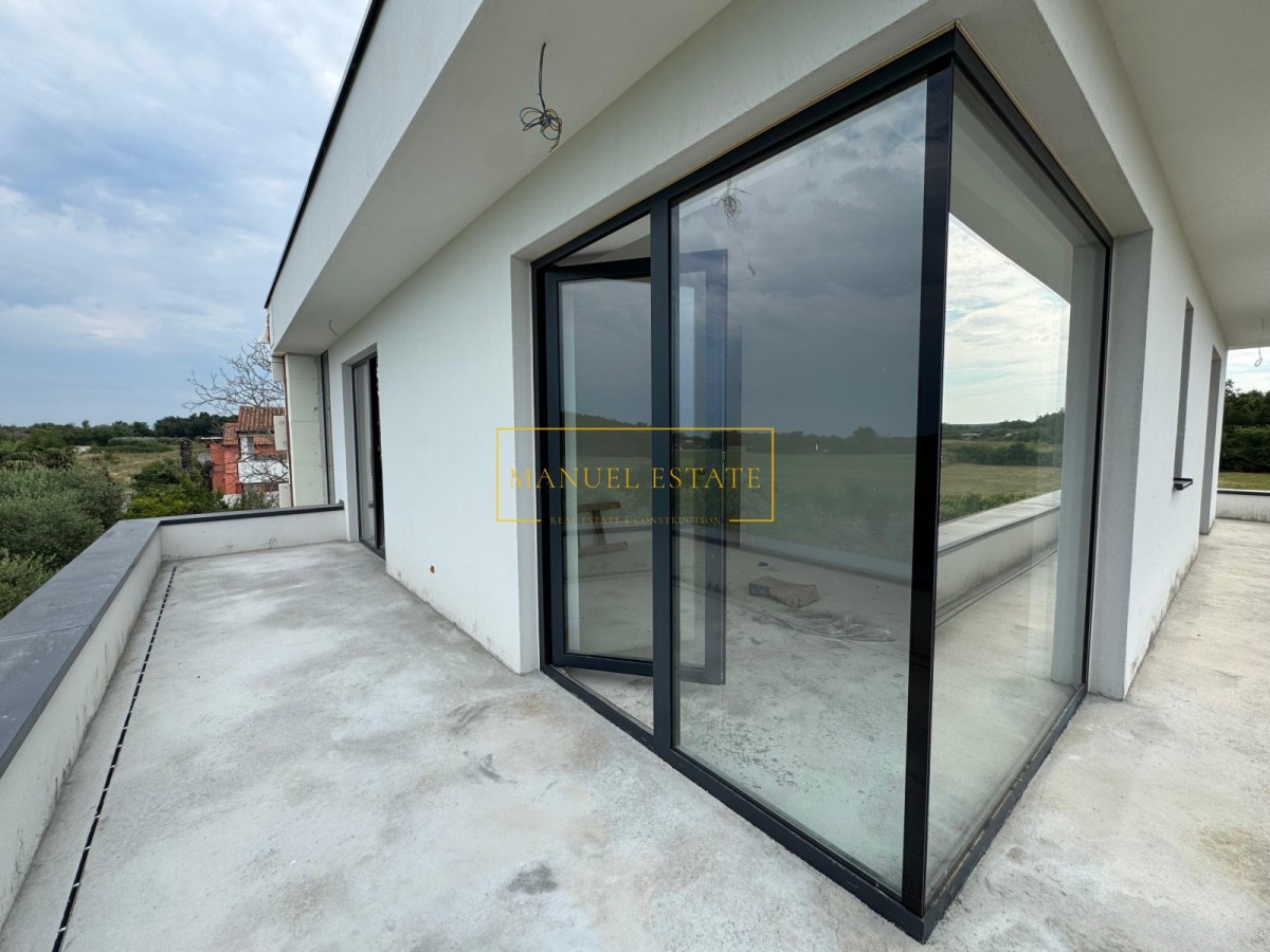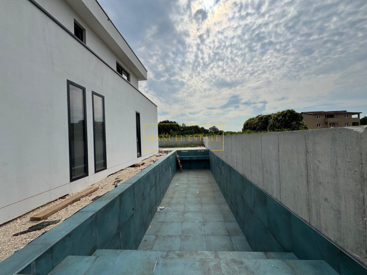 In vendita una villa moderna con piscina, situata a soli 5 chilometri dal mare e dal centro di Parenzo (Poreč), in una zona tranquilla vicino a tutti i servizi essenziali. Questa nuova costruzione del 2025 offre una superficie abitabile di 157 m² distribuiti su due piani, ideale sia per una vita familiare che come investimento per affitti turistici.