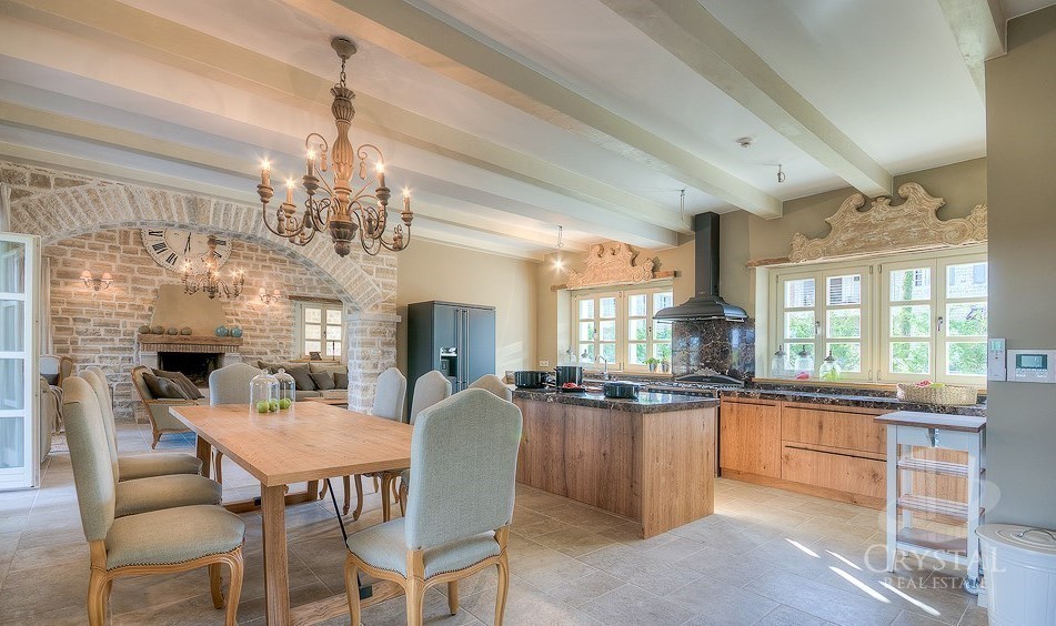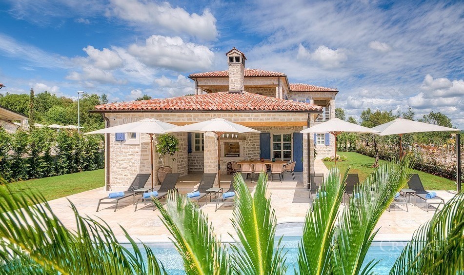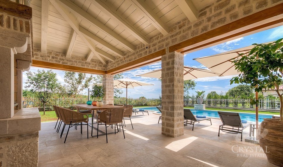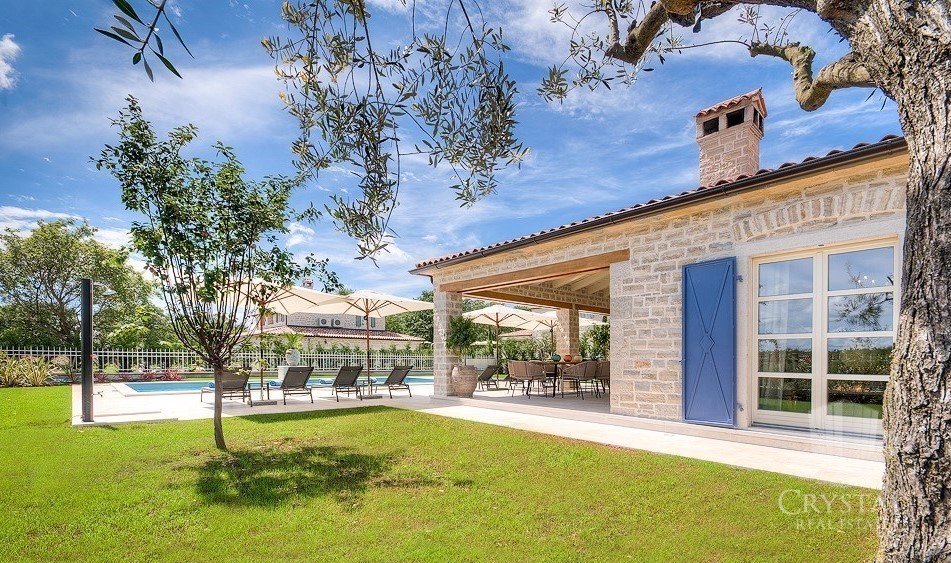 Villa elegantemente sofisticata nel mezzo di un pittoresco paesaggio istriano, vicino a spiagge isolate e pittoresche località costiere. La Villa in pianoterra offre la cucina, sala da pranzo, bagno, soggiorno, camino interno e due camere doppie ciascuna con il proprio bagno e terrazzo. L'esterno dispone di una piscina, un barbecue coperto e un bagno all'aperto che si abbina perfettamente agli arredi moderni e vintage.