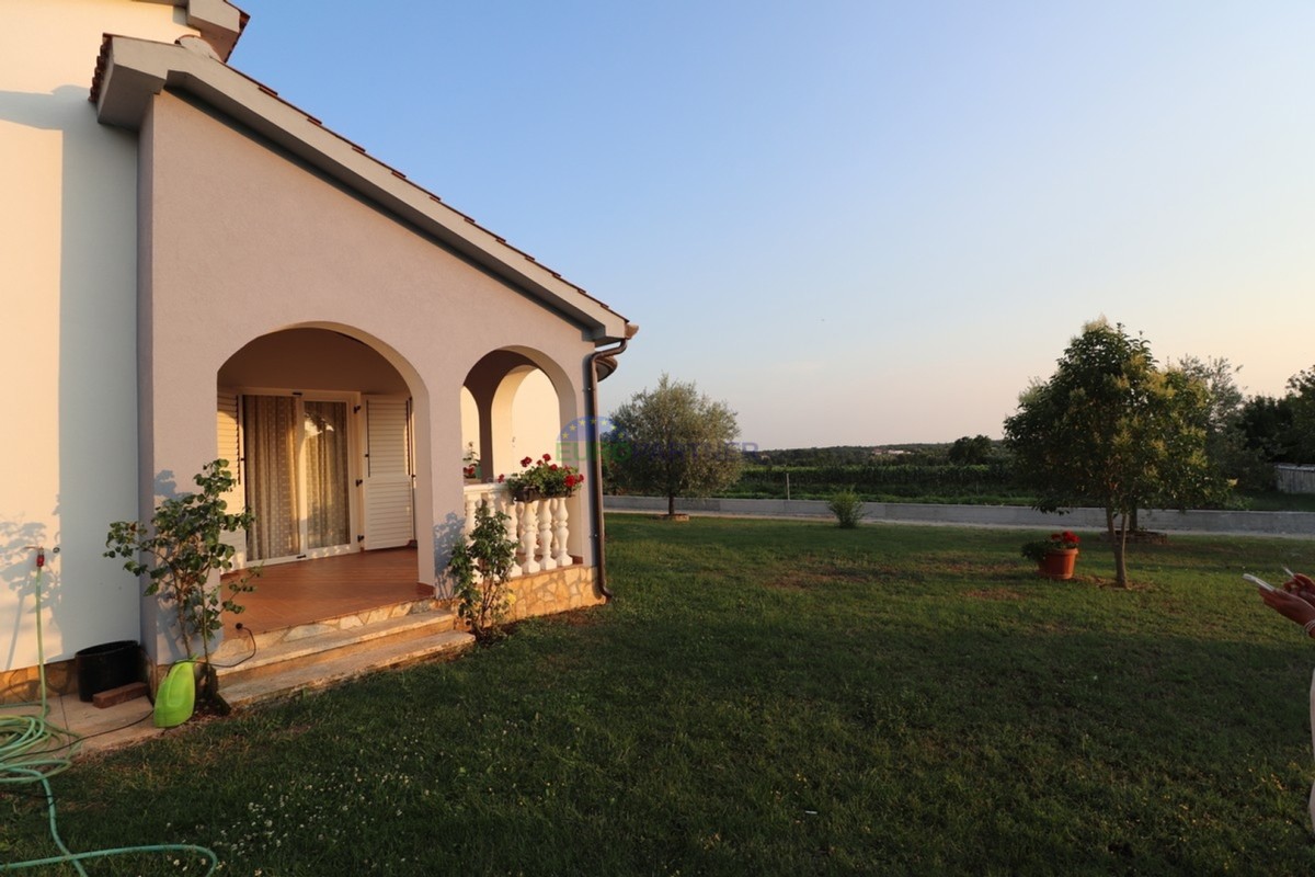 Questa bella casa a un piano si trova in un tranquillo villaggio vicino a Visignano. Si trova su un grande terreno di 5286 m2. La superficie abitabile della casa è di 133 mq ed è composta da portico d'ingresso, disimpegno, wc, cucina, sala da pranzo, soggiorno con uscita sul terrazzo, tre camere da letto, bagno e locale caldaia. La casa ha una mansarda che può essere sistemata e utilizzata anche come spazio abitativo o lavorativo. C'è un prato con ulivi, fiori e piante mediterranee autoctone sul giardino spazioso e ben curato. La casa ha il proprio vialetto e posti auto per diversi veicoli. Circondato da terreni agricoli, offre ai suoi proprietari assoluta tranquillità e privacy.