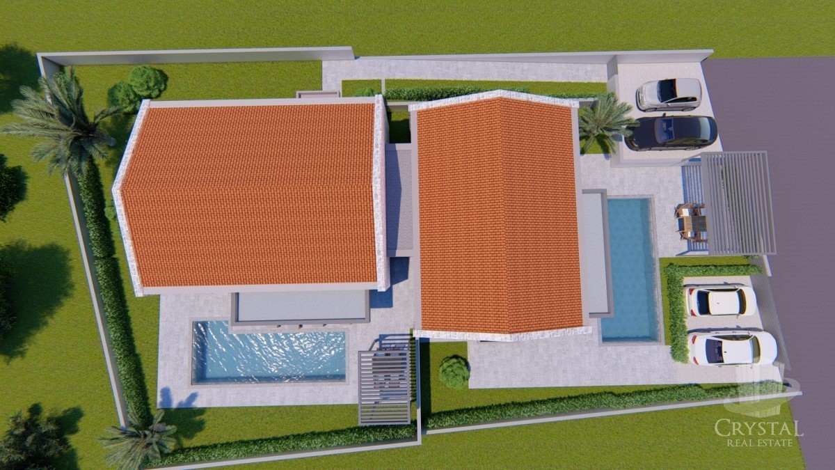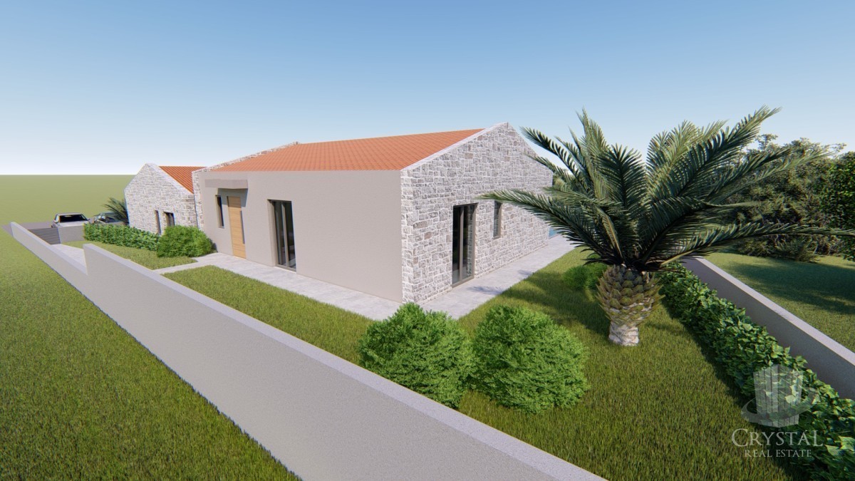 Questa abitazione di 90 m² si trova su un terreno di 400 m². È composta da tre camere da letto, un bagno, un WC separato e una cucina con soggiorno. Dal soggiorno si accede al cortile, che comprende un giardino e una piscina, una doccia esterna con riscaldamento solare e due posti auto. La privacy sarà garantita da una recinzione verde. Ogni stanza sarà dotata di aria condizionata e riscaldamento a pavimento.