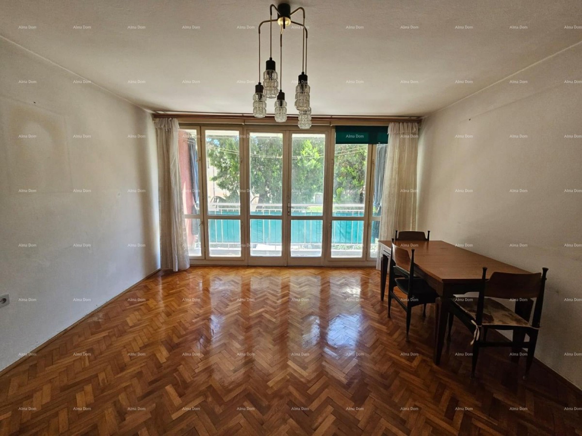 Kaštanjer. Te koop is een appartement van 59 m², gelegen op de hoge begane grond van een nette woongebouw in een rustige en gewilde straat in het bredere centrum van Pula.